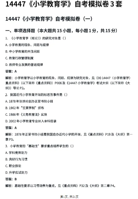 无论你是备考初期需要夯实基础、搭建知识框架,还是冲刺阶段想要借助真题提升应试能力,亦或是被某一难点困住难以突破,这份资料都能精准匹配你的需求。对于正为14447《小学教育学》全力奋战的自考考生来说,这样一份直击复习核心、助力高效提分的资料,无疑是不容错过的备考利器。
