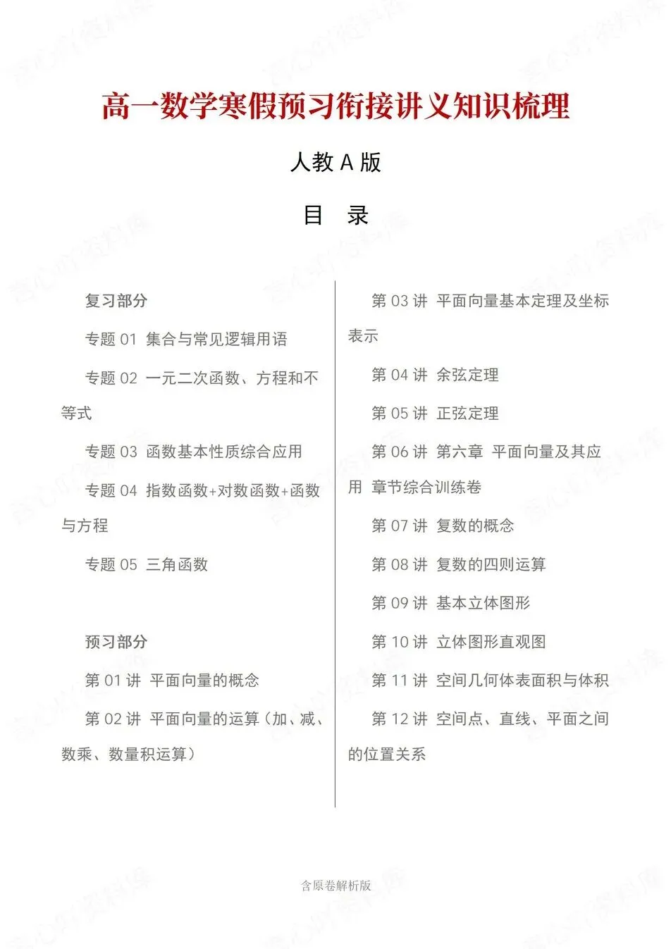 预习衔接,高中数学高一寒假假期预习梳理练习人教版,12讲知识归纳衔接,,