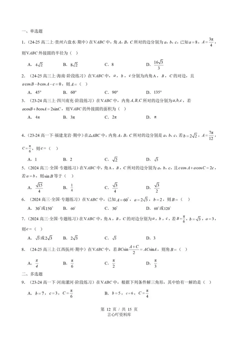 历年高考真题