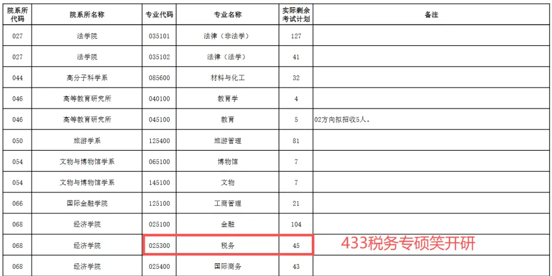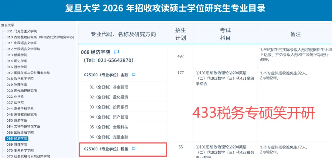 初试科目 | ①101思想政治理论 ②204英语(二) ③303数学(三) ④433税务专业基础 |
