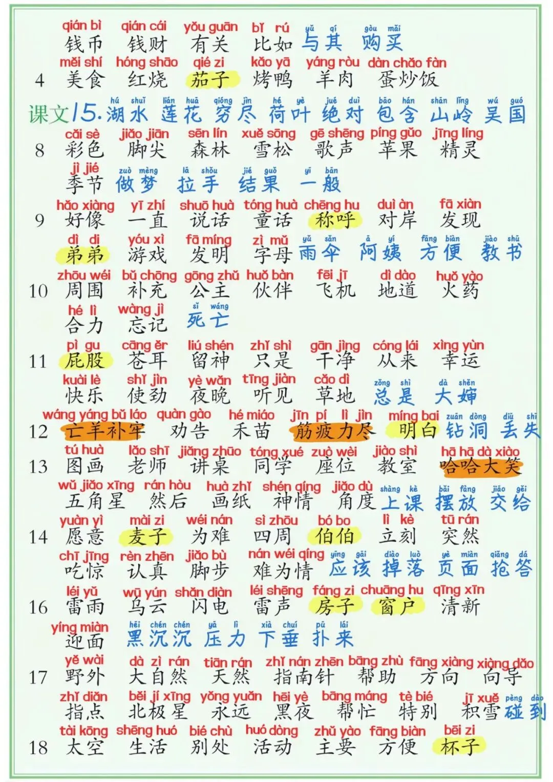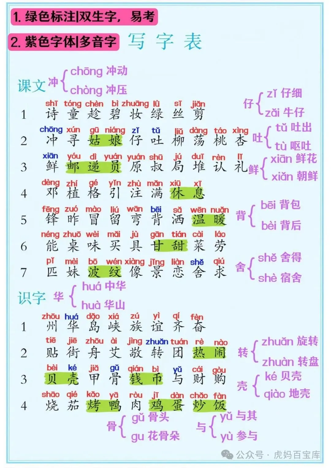 2、二下语文期中期末复习必考知识点