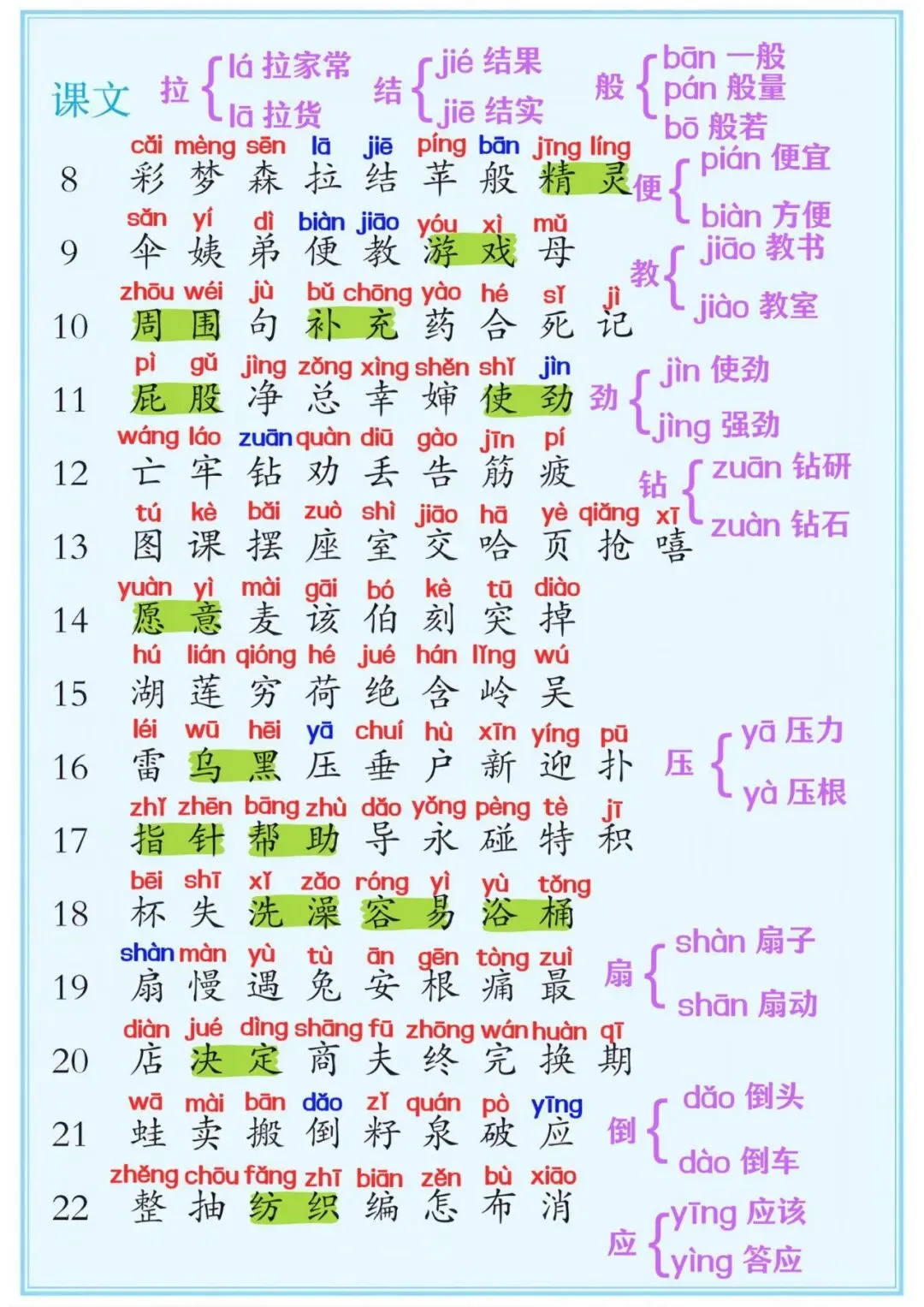 3、二下语文(1-8单元)看拼音写词语专项练习