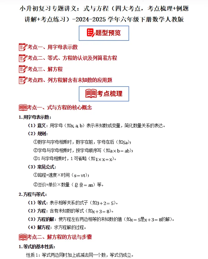 >【寒假,弯道超车】小升初复习专题讲义(考点梳理+例题讲解+考点练习)-2024-2025学年六年级下册数学,人教版
