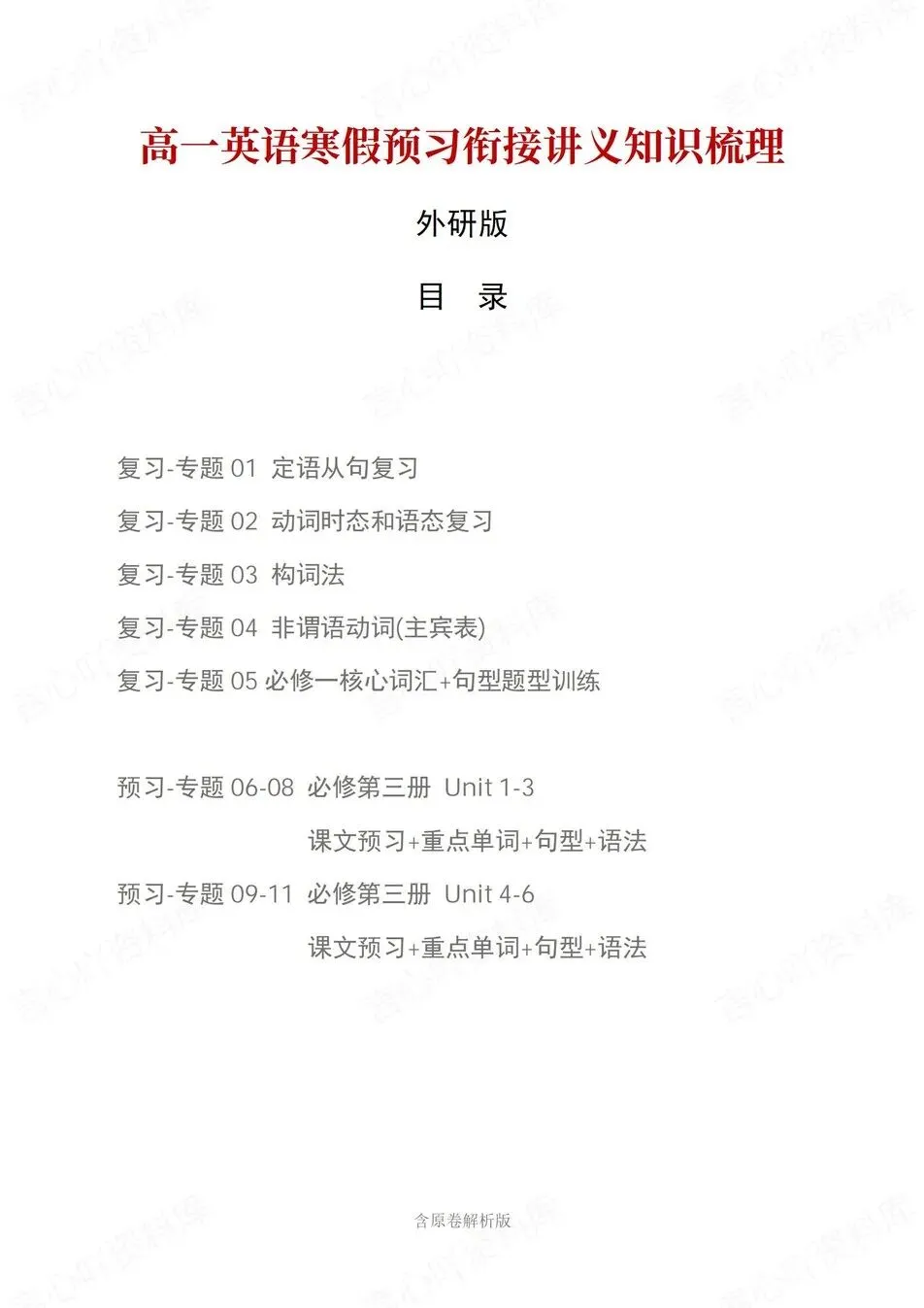 >高中英语-高一寒假衔接预习讲义知识归纳复习练习外研版