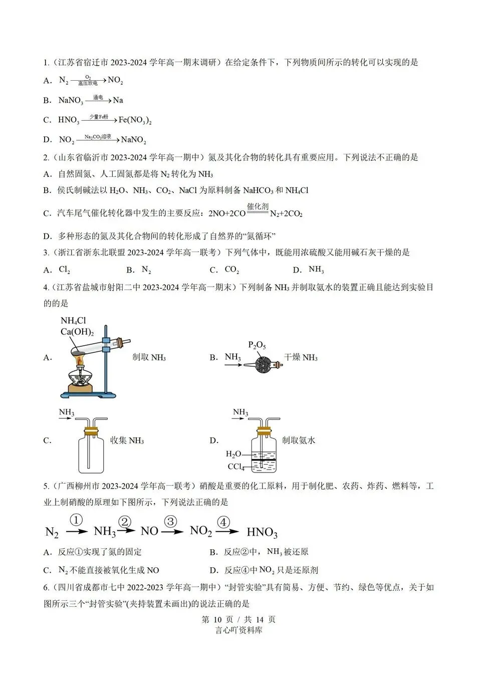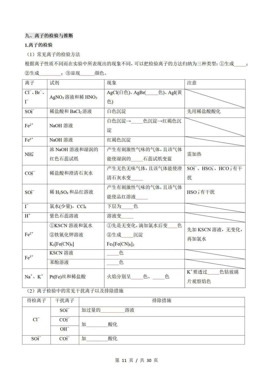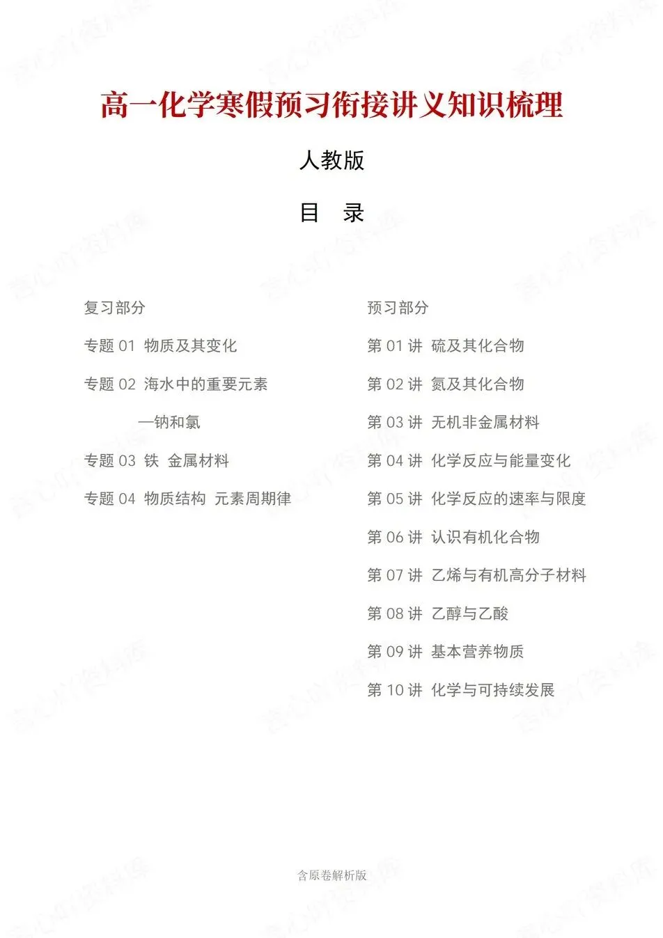 预习衔接,高中化学高一寒假假期预习梳理练习人教版,10讲知识归纳衔接,,