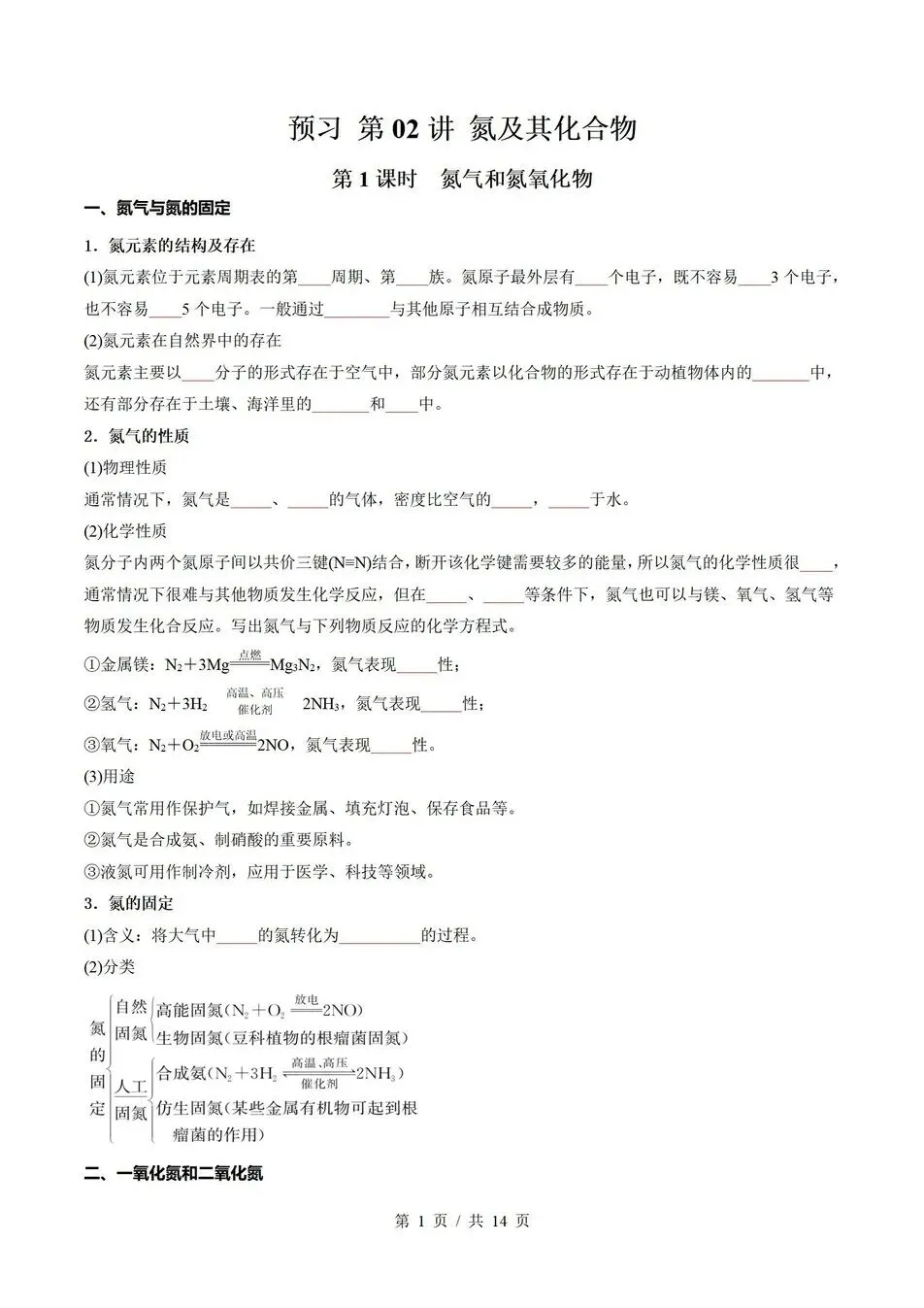 高中化学-高一寒假衔接预习讲义知识归纳复习练习人教版