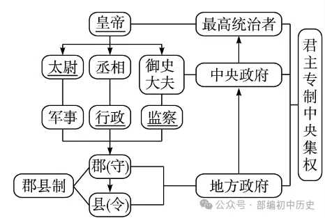 (2)首创:秦始皇或者嬴政;名称:丞相;影响:郡县制的普遍推行,开创了此后我国历代王朝地方行政的基本模式。