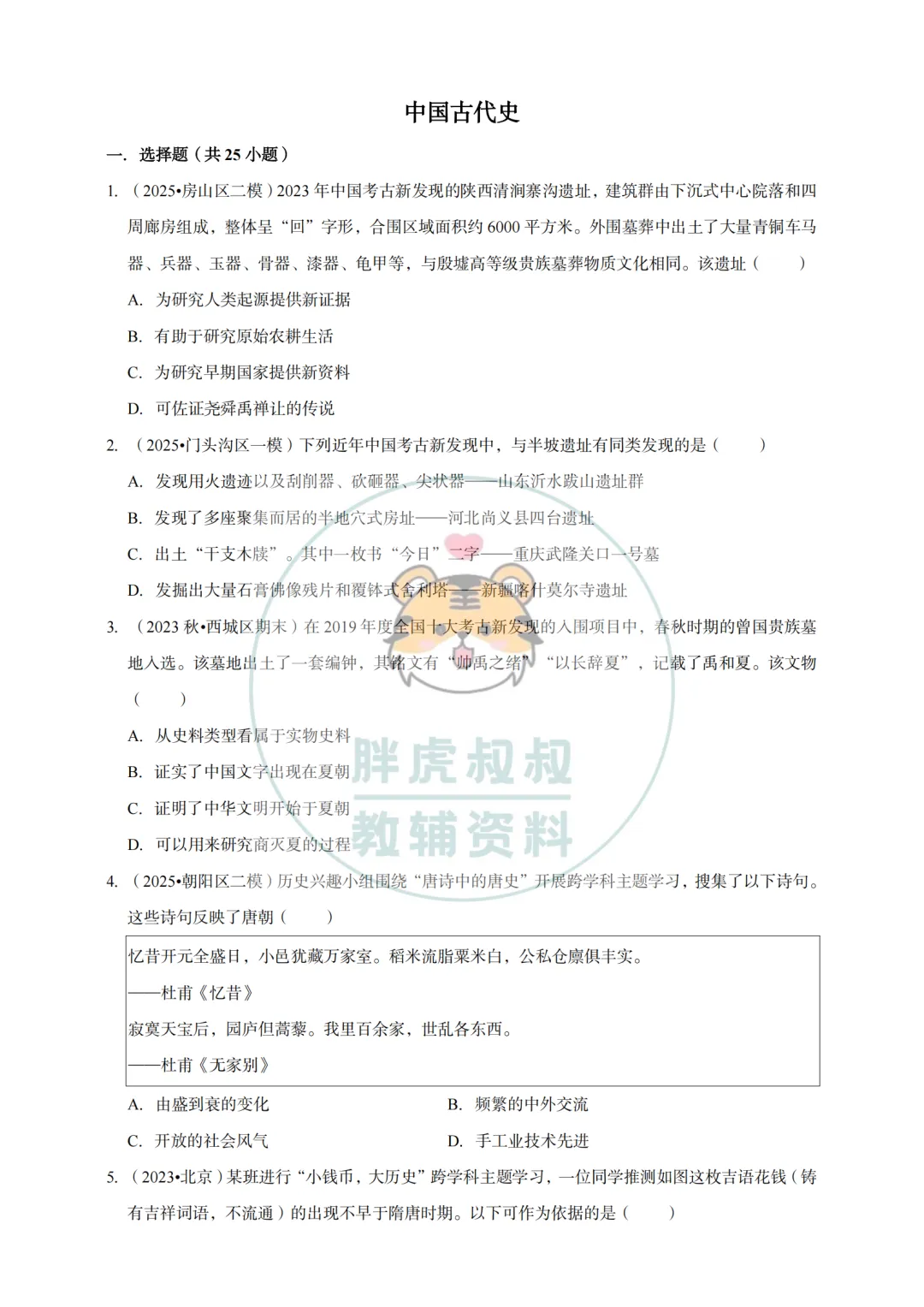 今天给大家准备好了,26年中考历史一轮复习:中国古代史(含解析)。建议分享到班级群/年级群,让家长打印出来,帮助孩子学习!