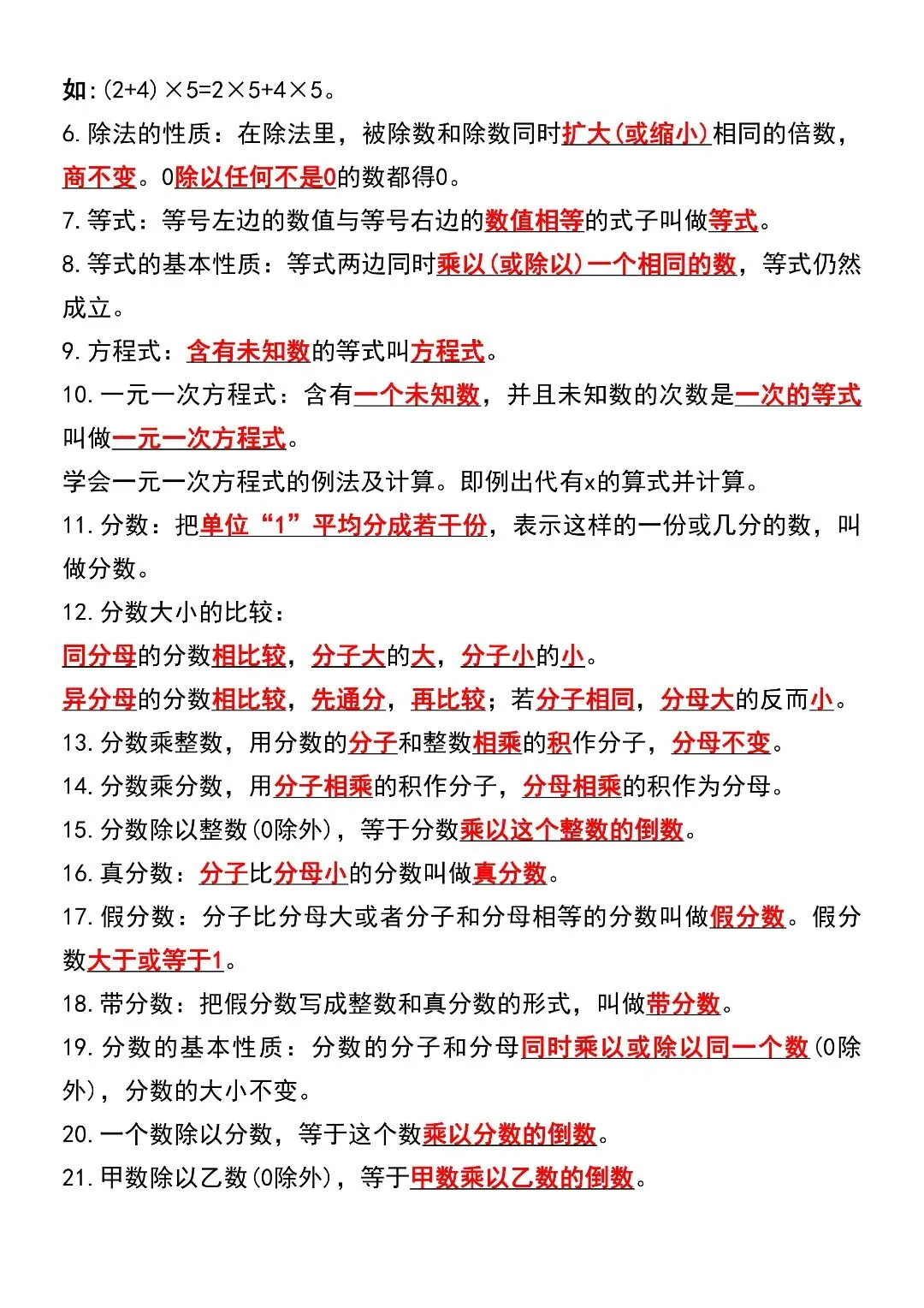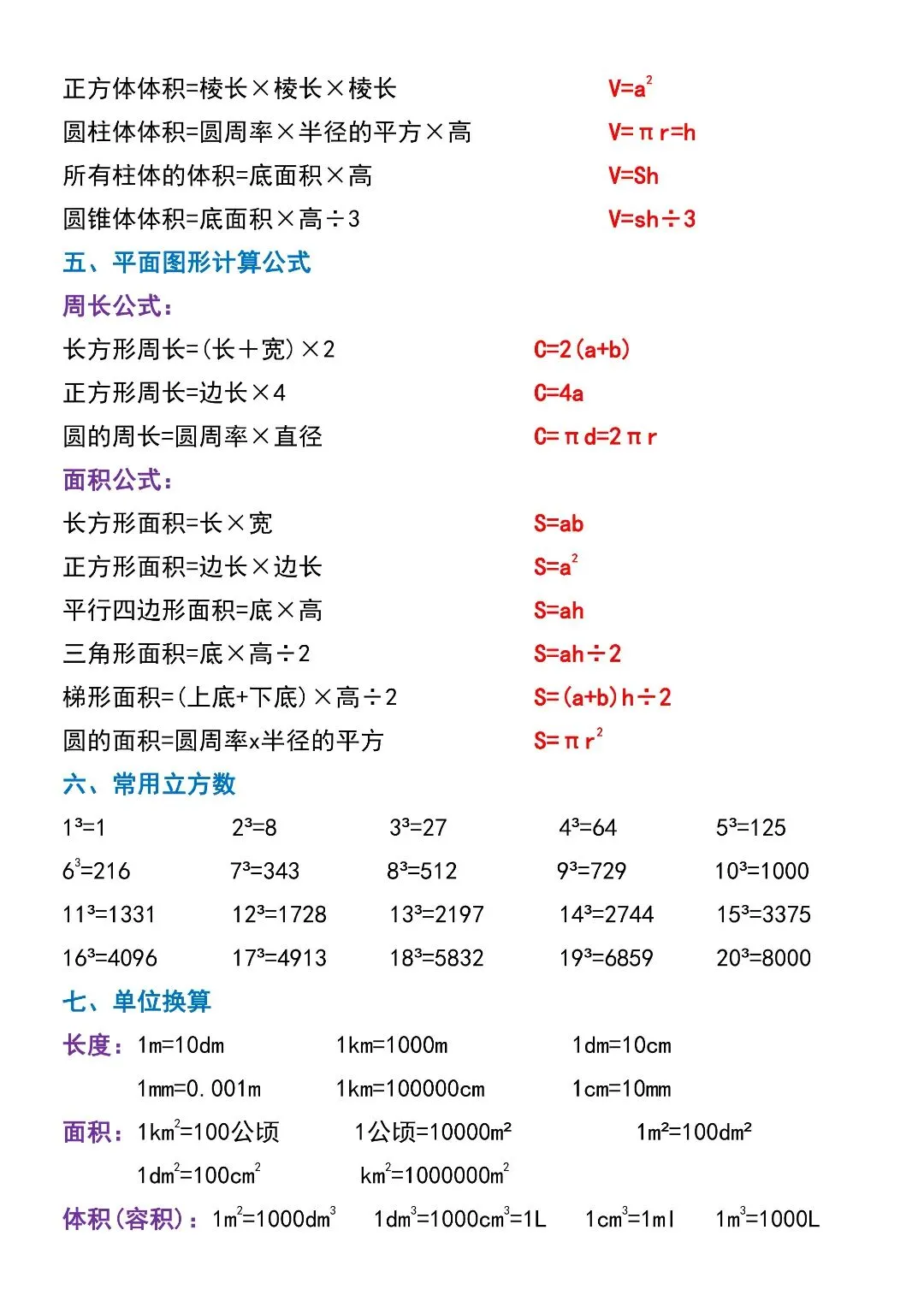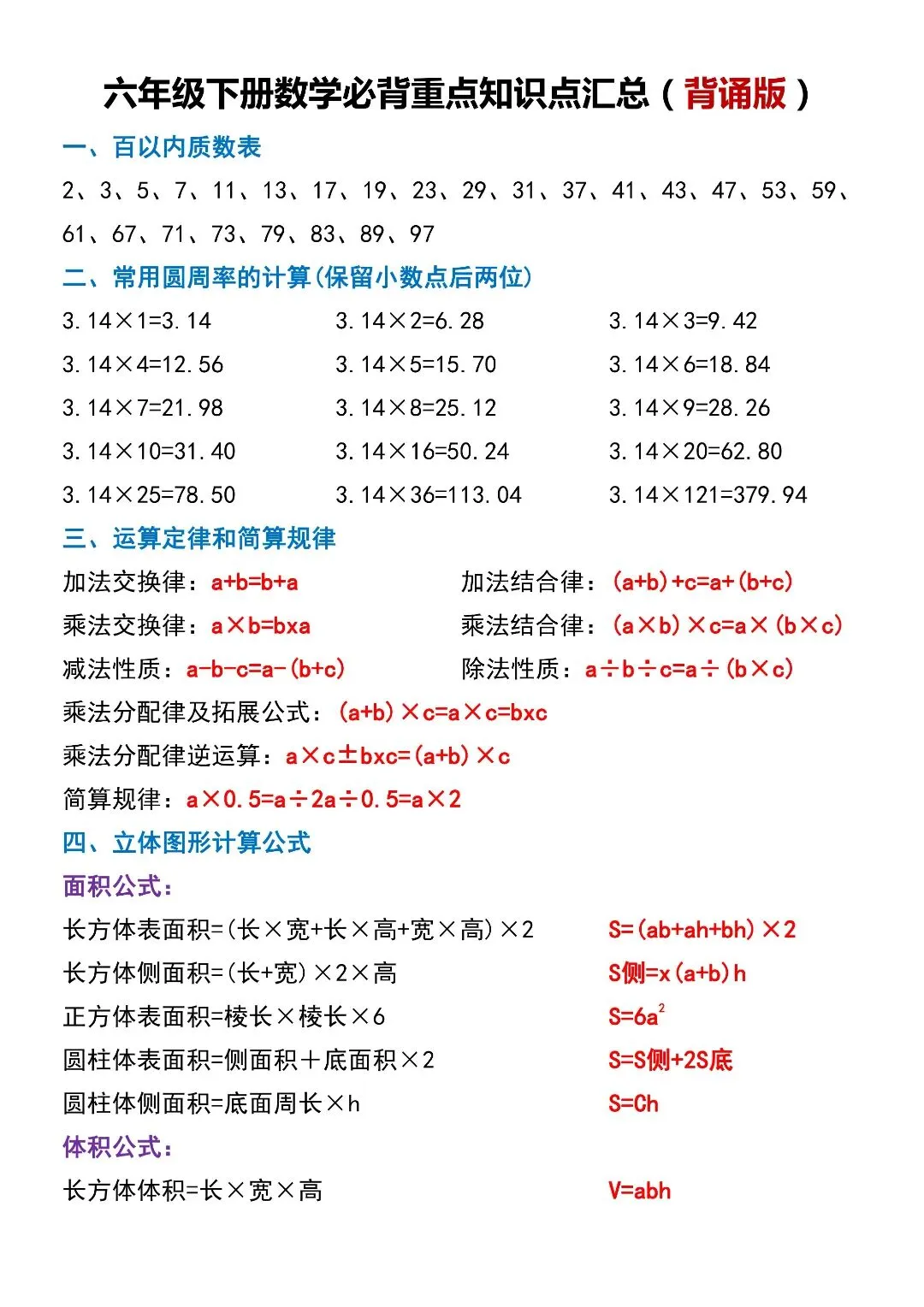 六年级数学下册寒假复习,重点必背知识汇总!
