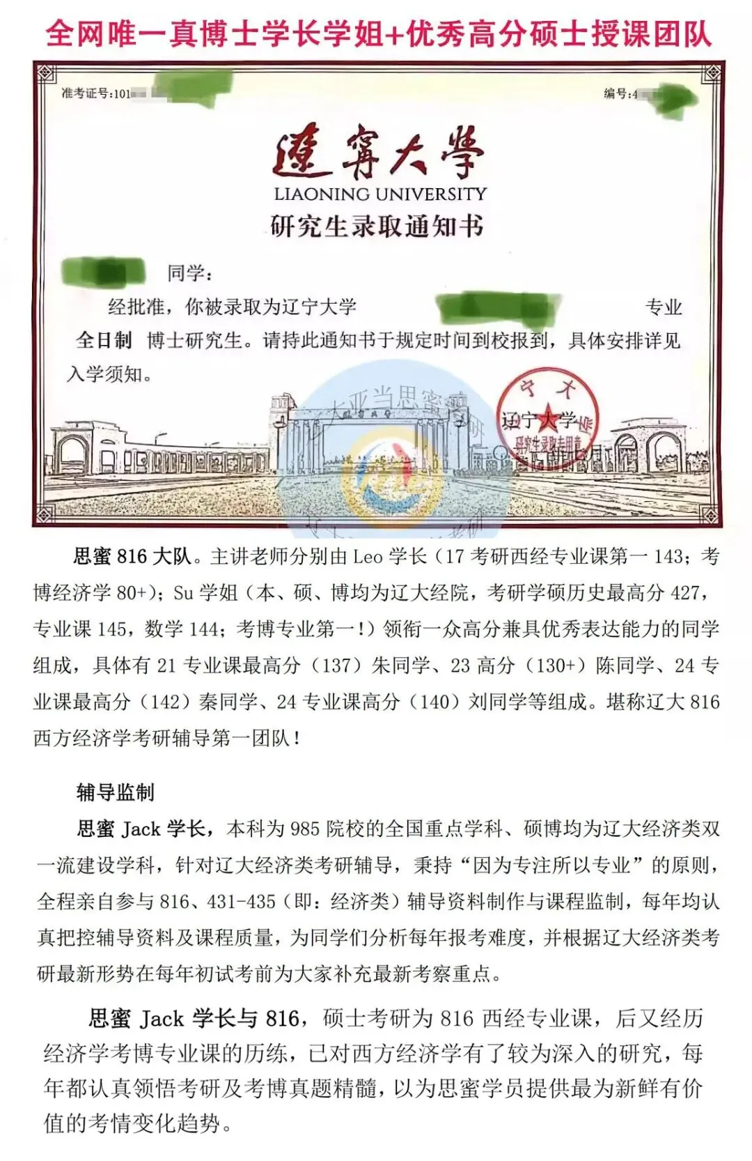 辽大亚当思蜜硕博自2018年从事辽大816西方经济学专业课辅导至今已有九年时间,拥有最强师资!保守统计已帮助千余人上岸辽大经济类学硕各专业,是帮助辽大经济学硕考生上岸人数最多的辅导团队,是历年816西方经济学最高分考生选择的团队,是辽大816西方经济学最强辅导航母团队!