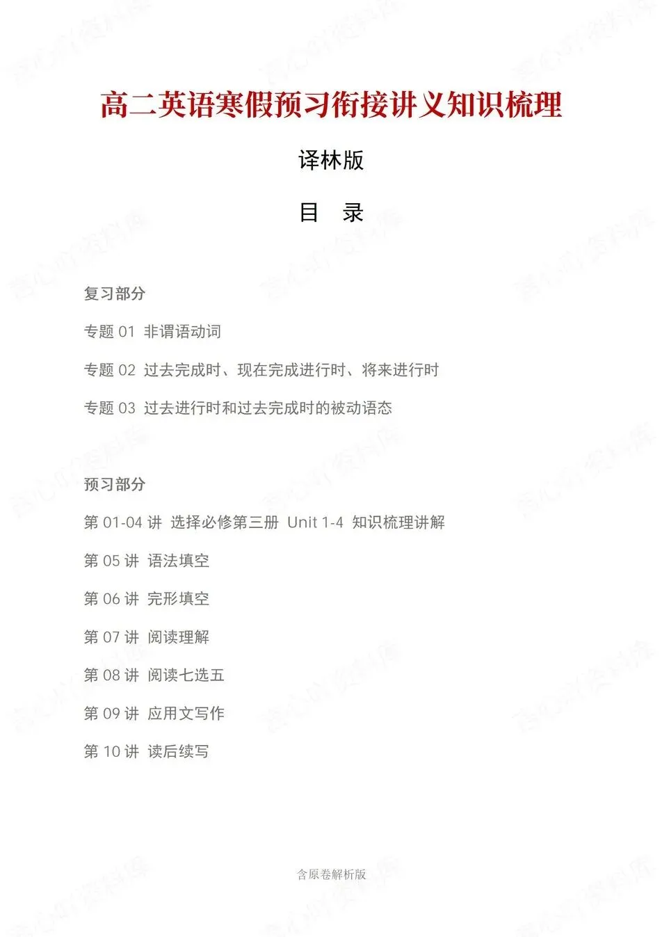 衔接预习,高中英语高二寒假假期预习梳理练习译林版,10讲知识归纳衔接,,