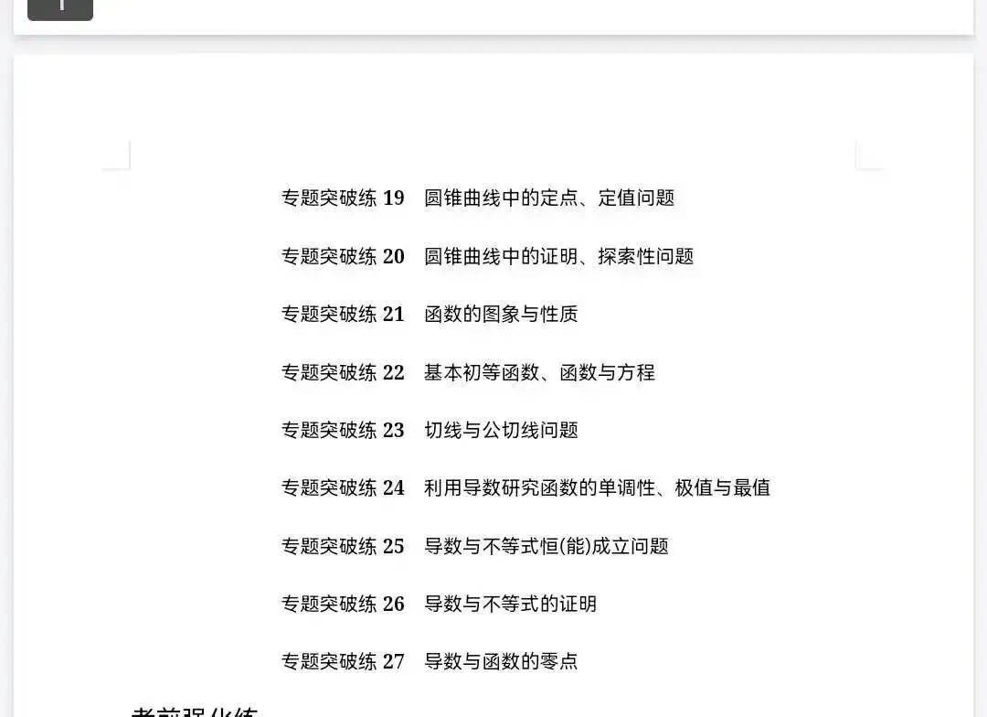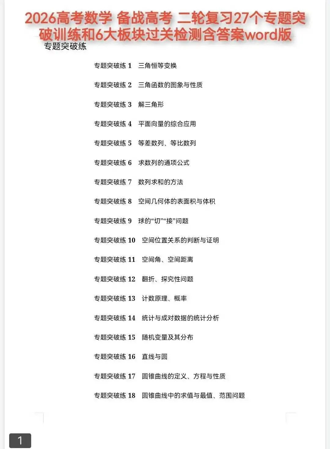 ✅内容包括三角函数、数列、圆锥曲线、函数与方程、导数等27个专题,题量丰富,题型覆盖全面,适合不同复习阶段使用。