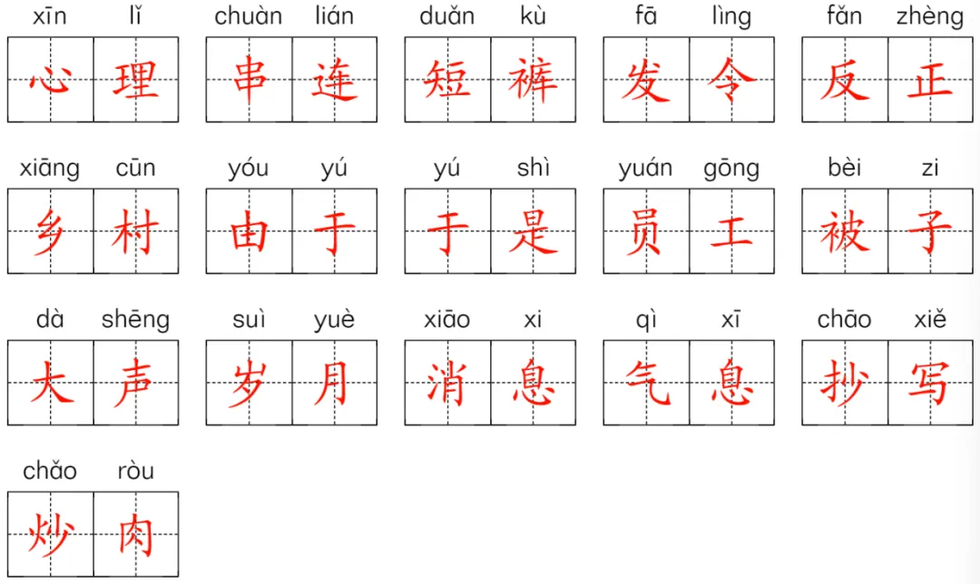 生字组词的顺序为生字表里的顺序,如果遇到困难,可以打开书一一对应地查找和复习。