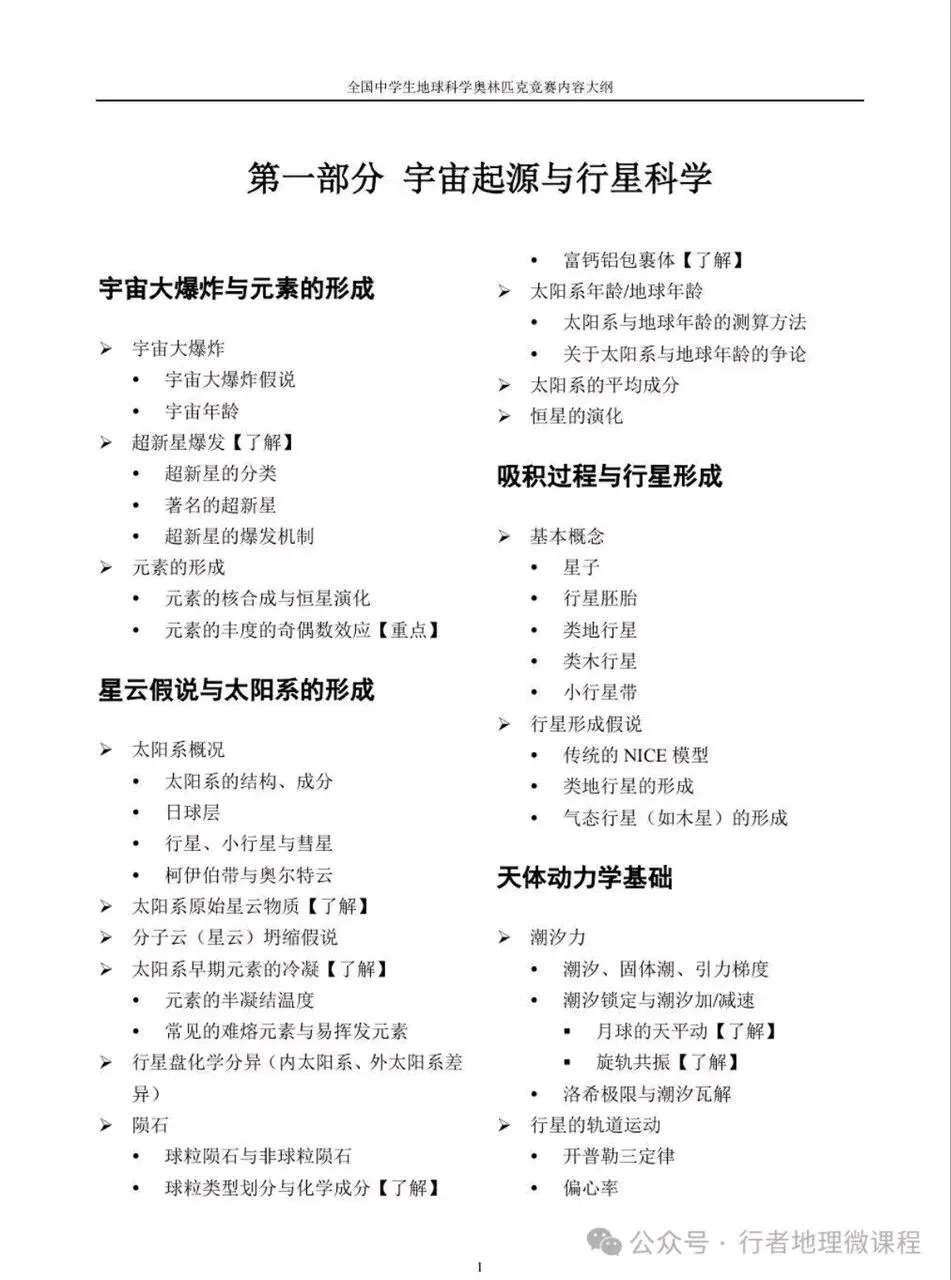 根据全国中学生地球科学奥林匹克竞赛内容大纲(2025年修订版),特此针对各个章节进行复习备考知识点的细化梳理,已整理完善。