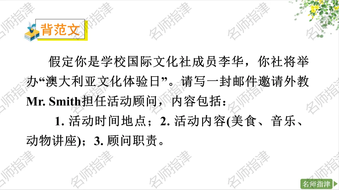 2026名师指津一轮人教版中,为方便大家复习,我们根据每个单元的特点,整理了应用文范文、实用词汇以及写作佳句。