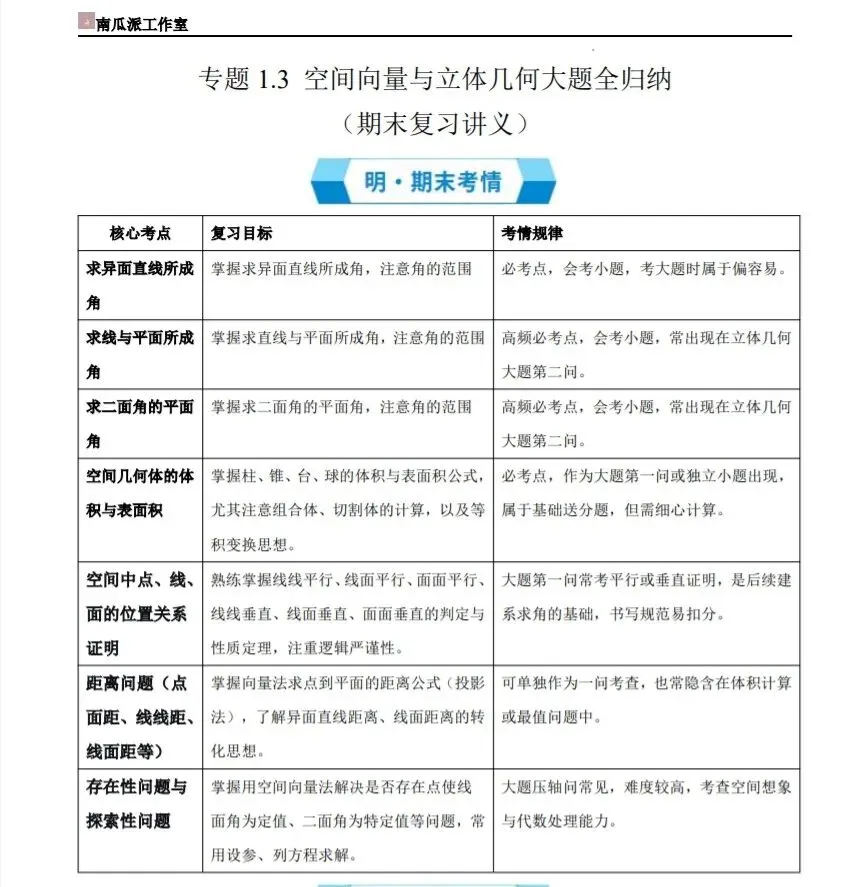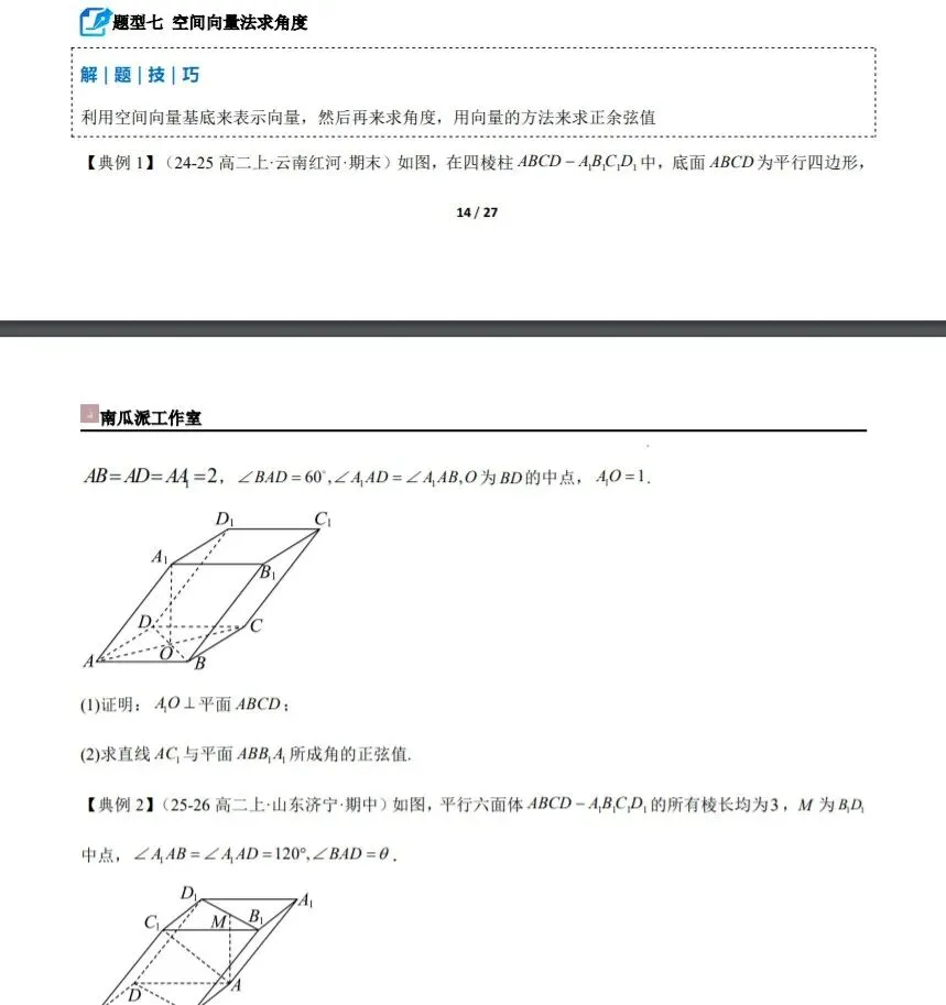 >2026高二数学期末复习资料 I 空间向量与立体几何特训