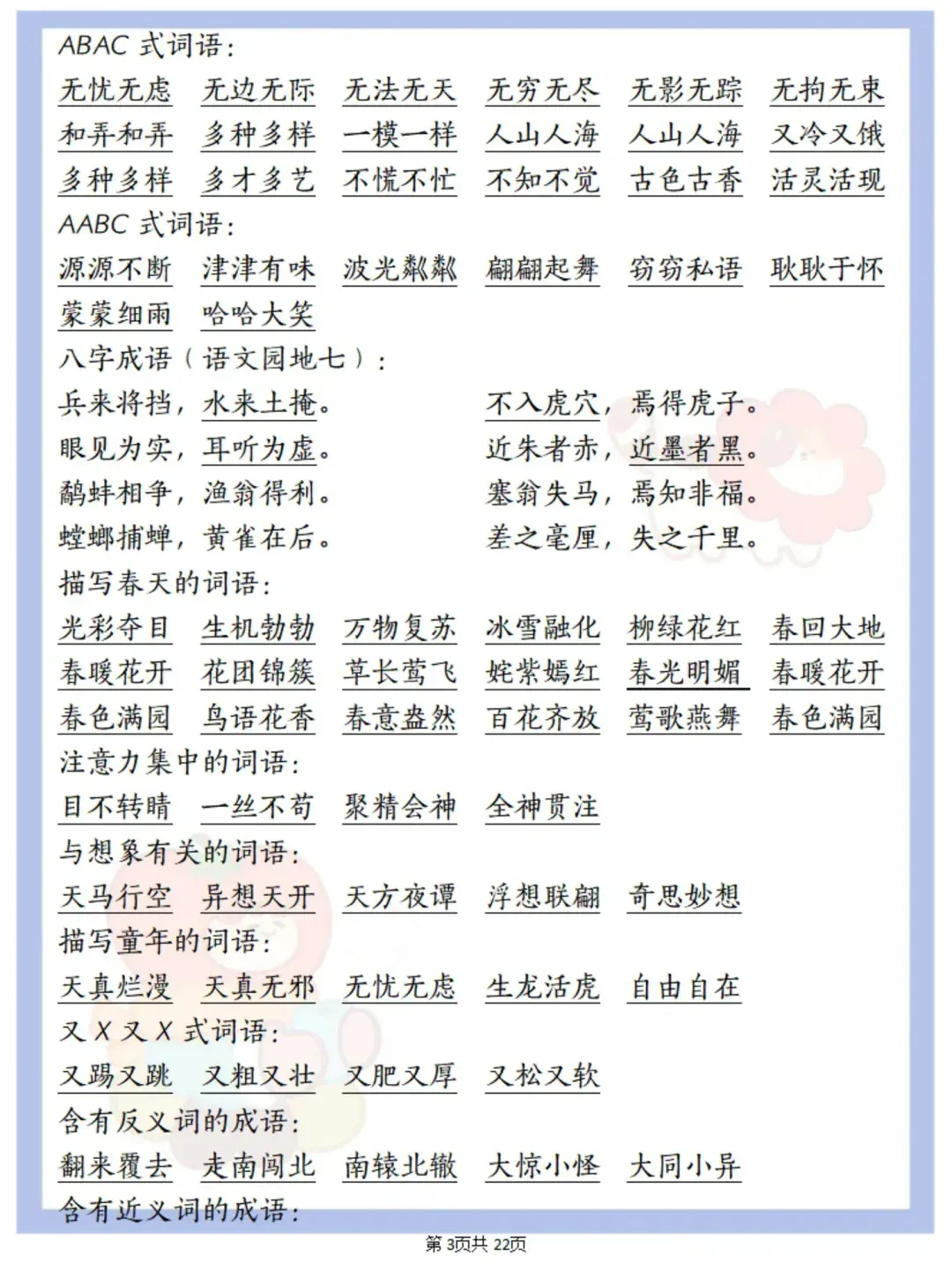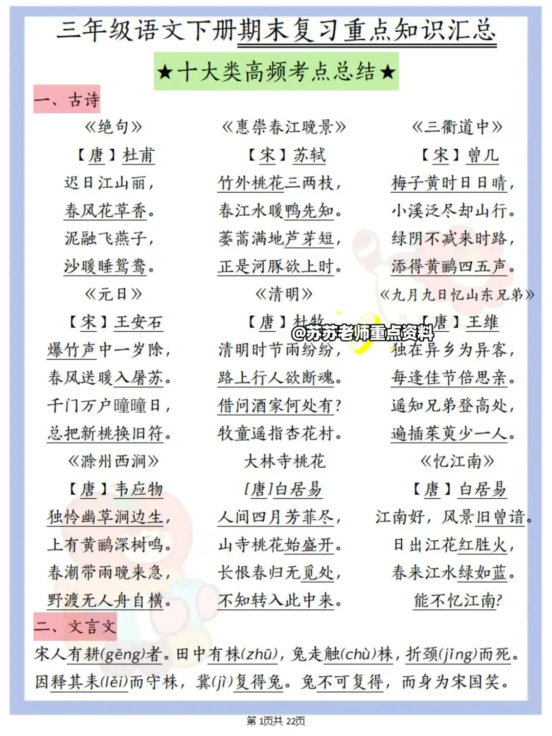 当前位置:首页>复习资料>三年级语文下册期末复习重点知识汇总