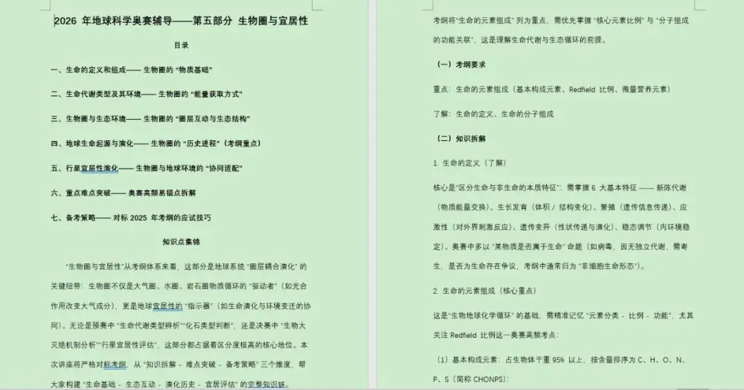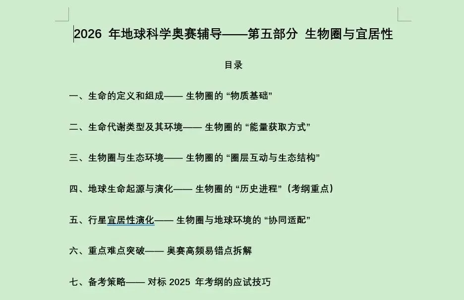 根据全国中学生地球科学奥林匹克竞赛内容大纲(2025年修订版),特此针对各个章节进行备考知识点的细化梳理,已整理完善。