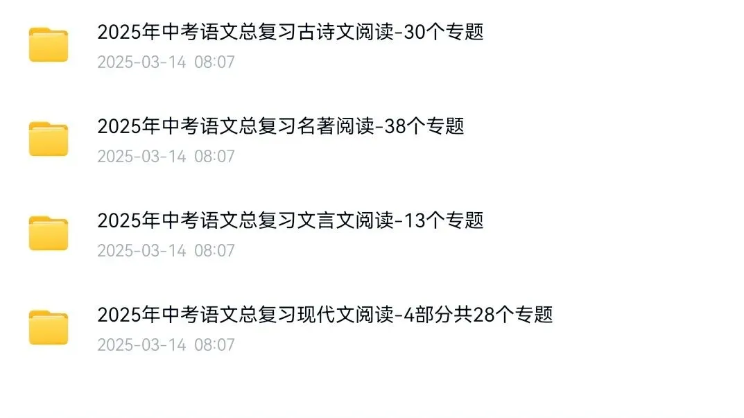 后台提及最多的中考复习资料,之前发的这个推文资料是2024年的,是旧资料,大家如果用得上就做一个参考,资料是相对全面的。