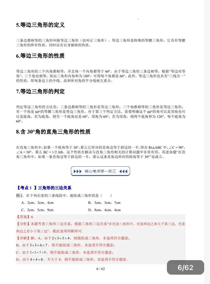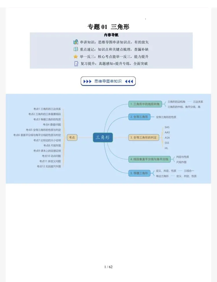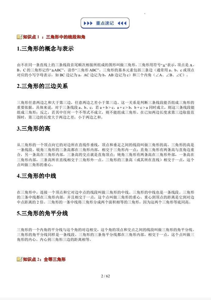 2026寒假预复习|三角形(重点知识梳理讲义)苏科版,电子版可打印