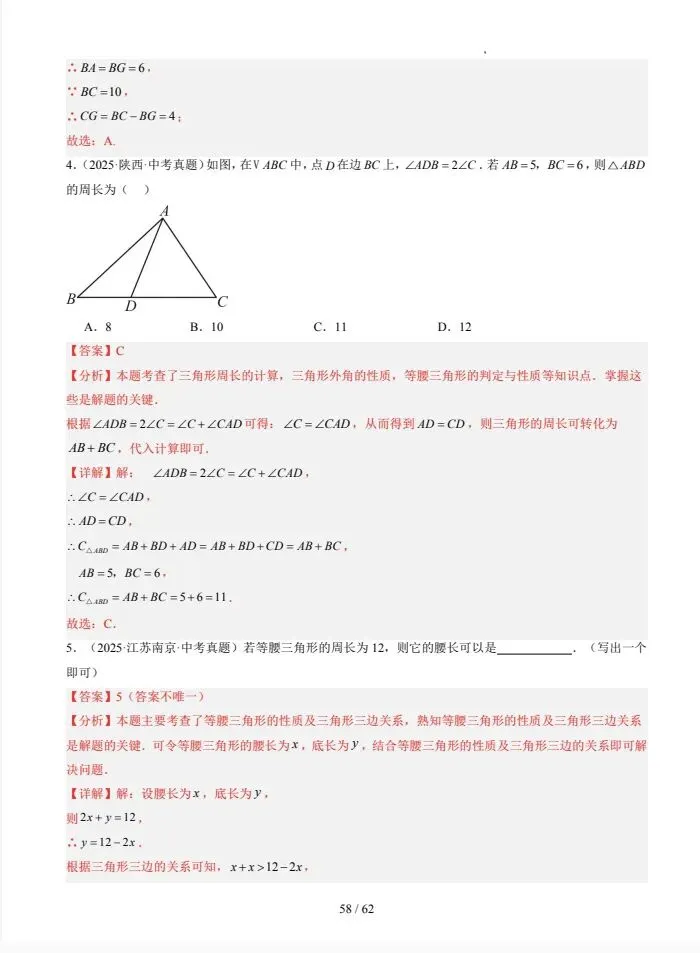三角形(寒假复习讲义) 原件版+解析版,苏科版