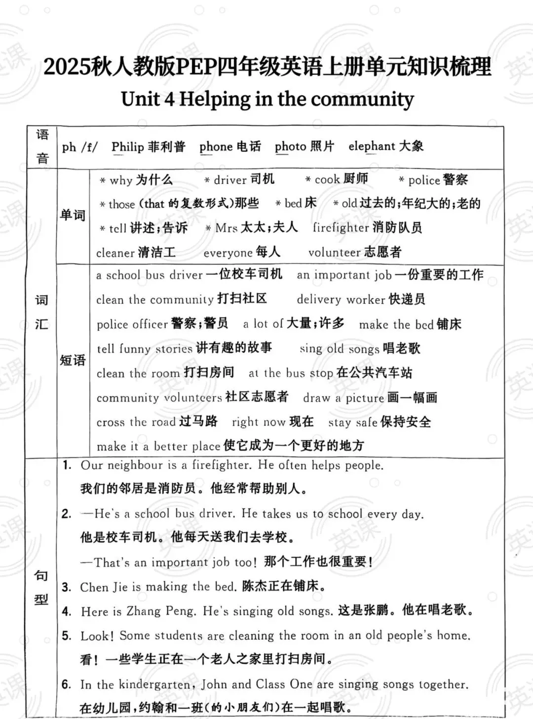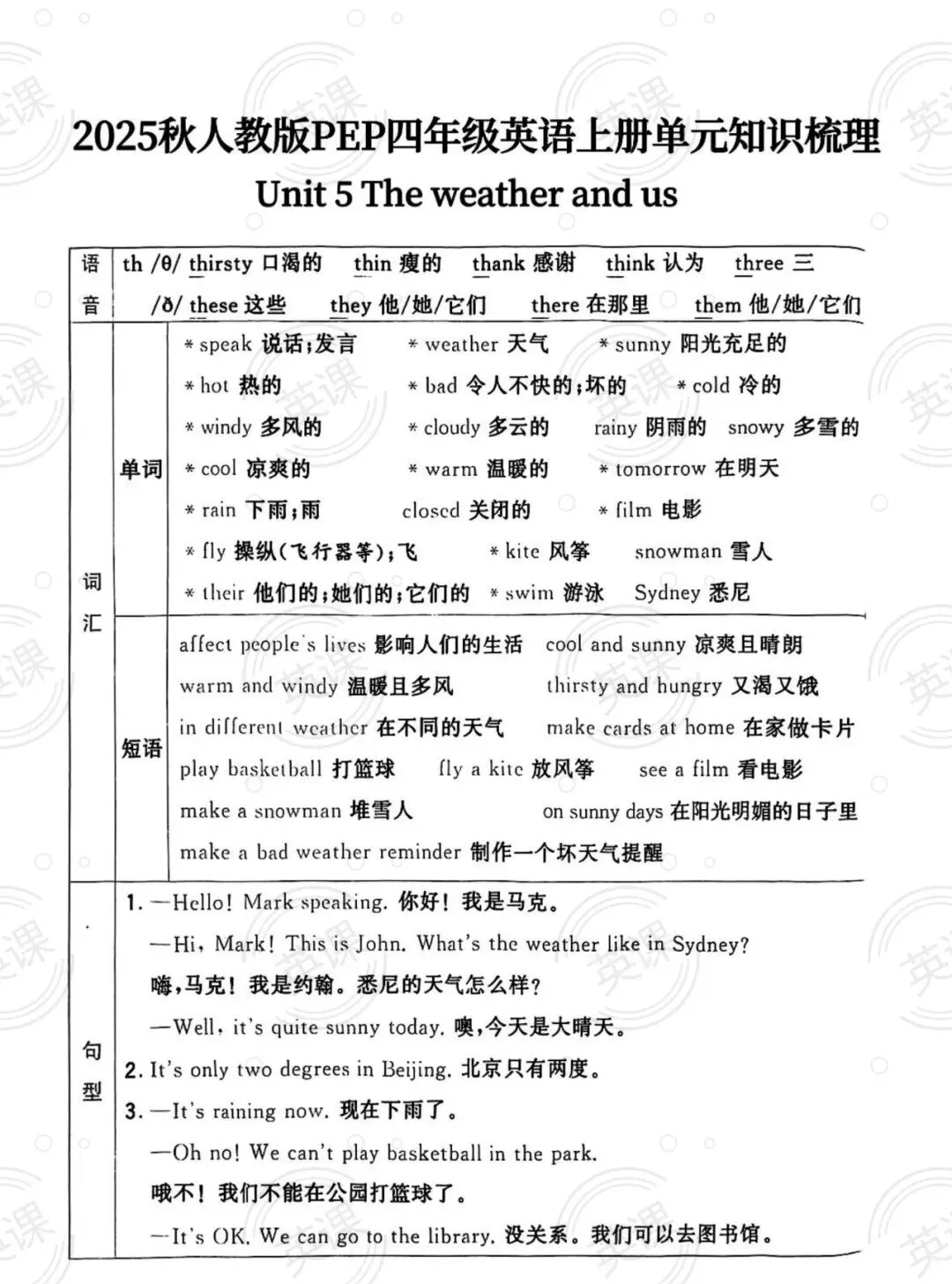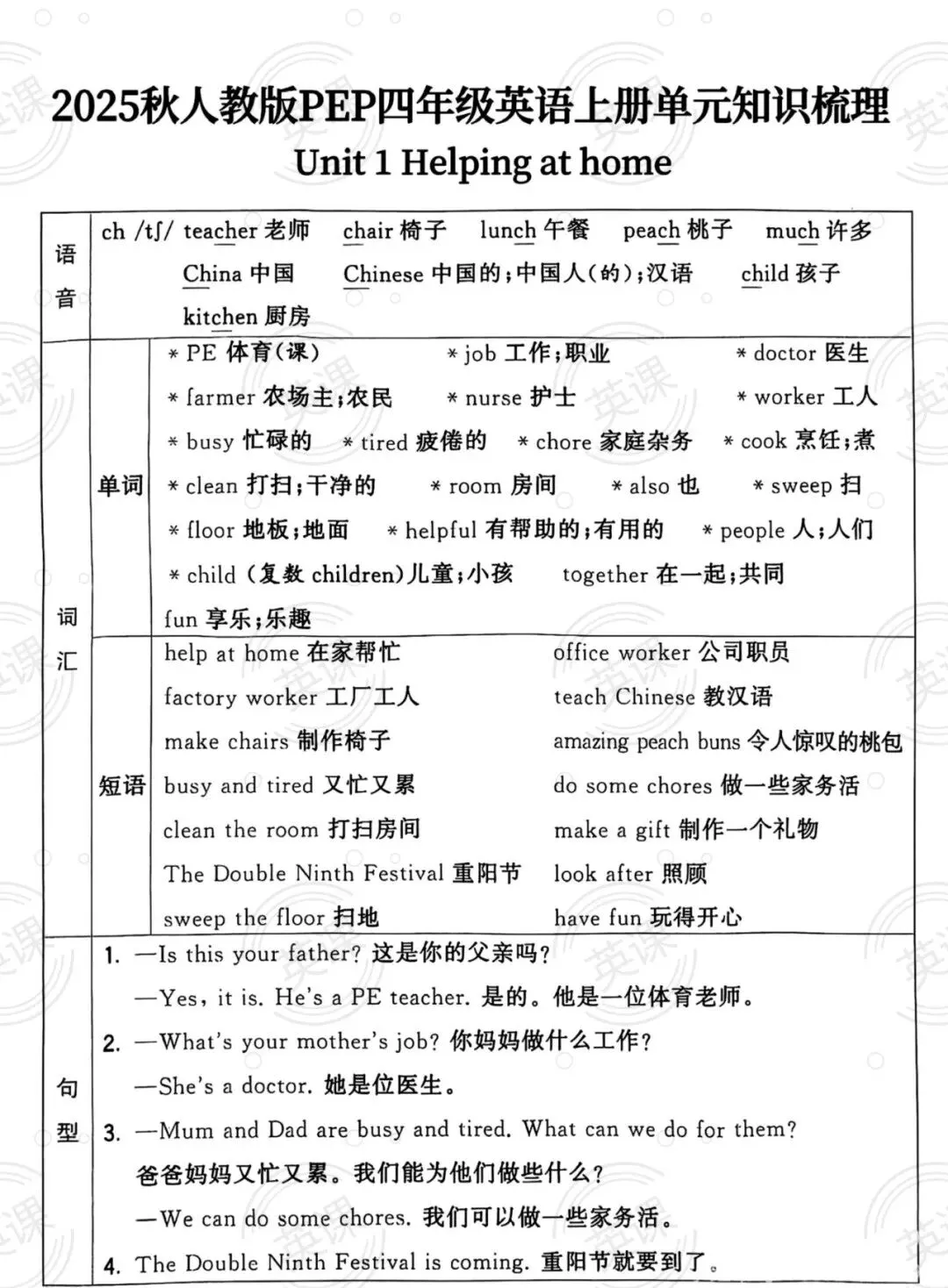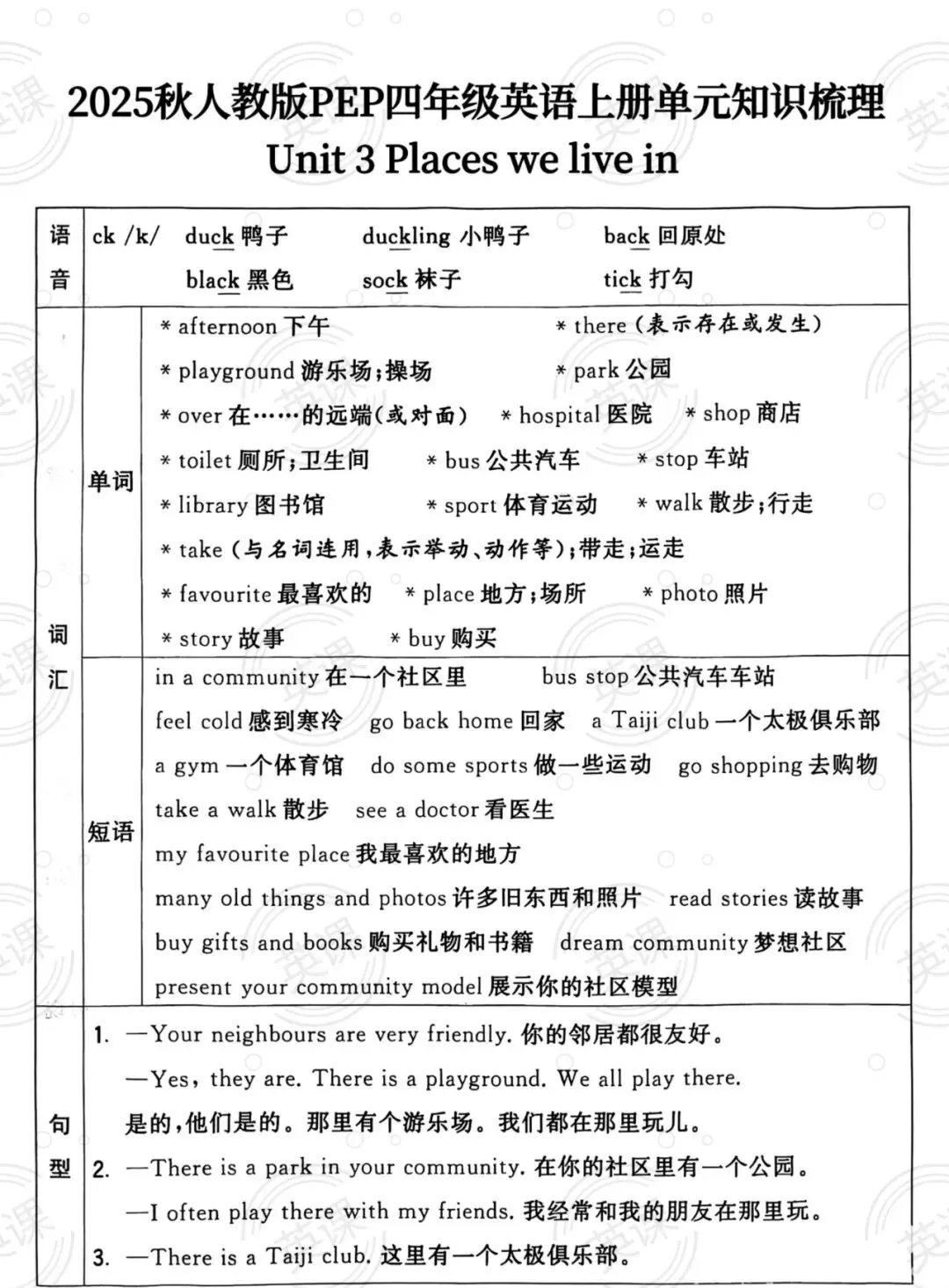 当前位置:首页>复习资料>【复习资料】人教PEP版小学英语四年级上册基础知识汇总(可免费下载打印)