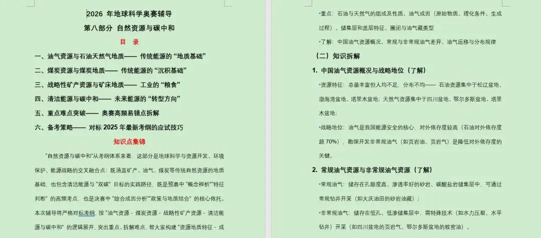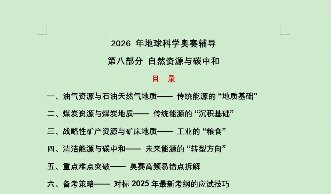 根据全国中学生地球科学奥林匹克竞赛内容大纲(2025年修订版),特此针对各个章节进行复习备考知识点的细化梳理,已整理完善。