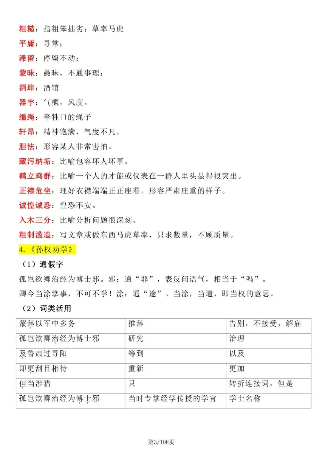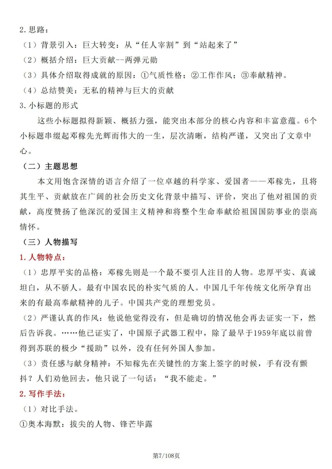 >2026年春最新七年级下册语文全册复习资料108页(文末有完整电子版,可打印,建议收藏)!