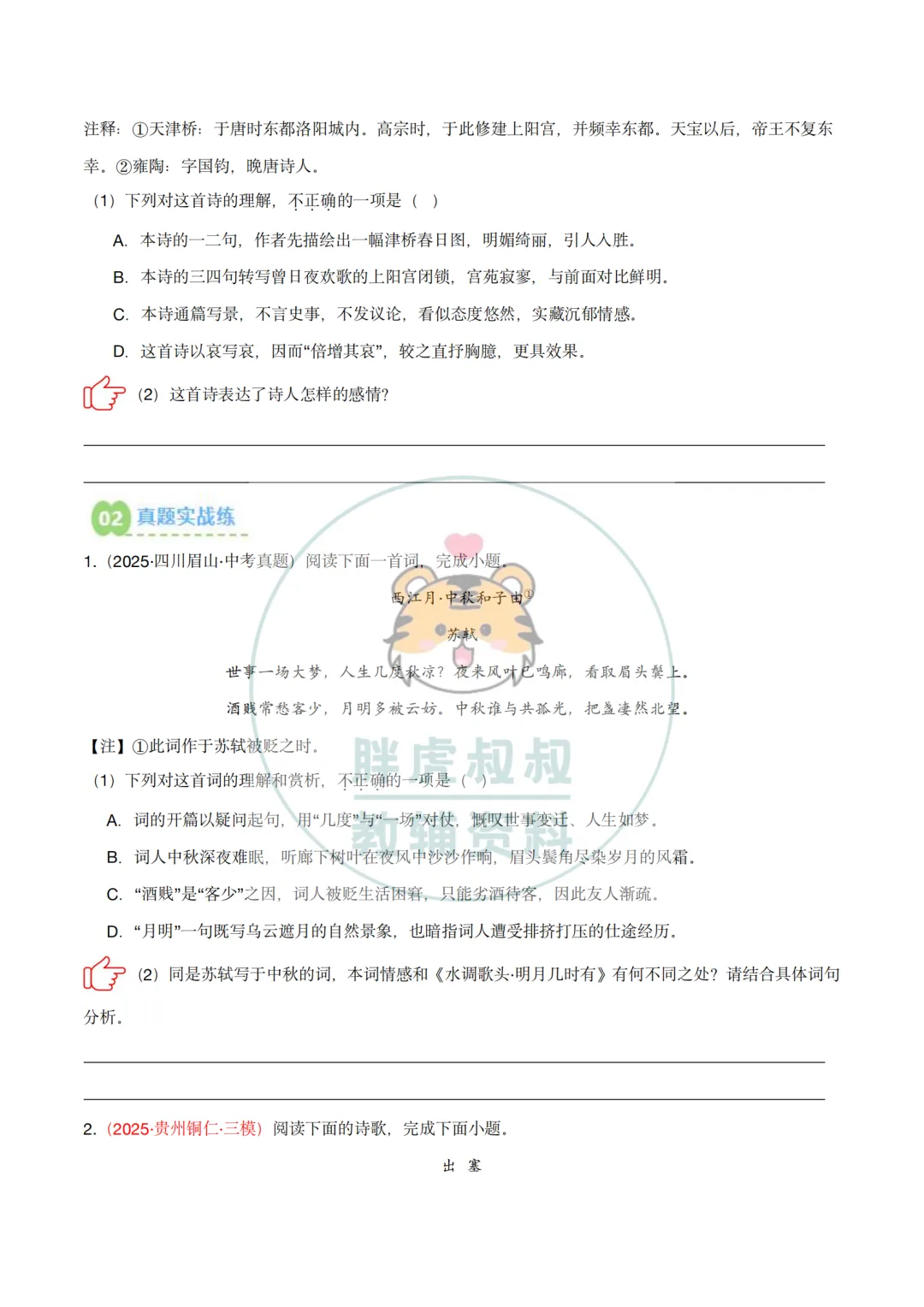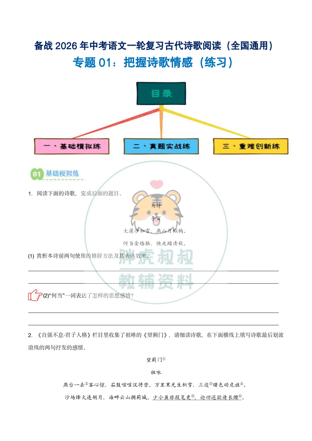 今天给大家准备好了,备战2026年中考语文一轮复习之古诗文专题(全国通用)专题01:把握诗歌情感(练习)。建议分享到班级群/年级群,让家长打印出来,帮助孩子学习!
