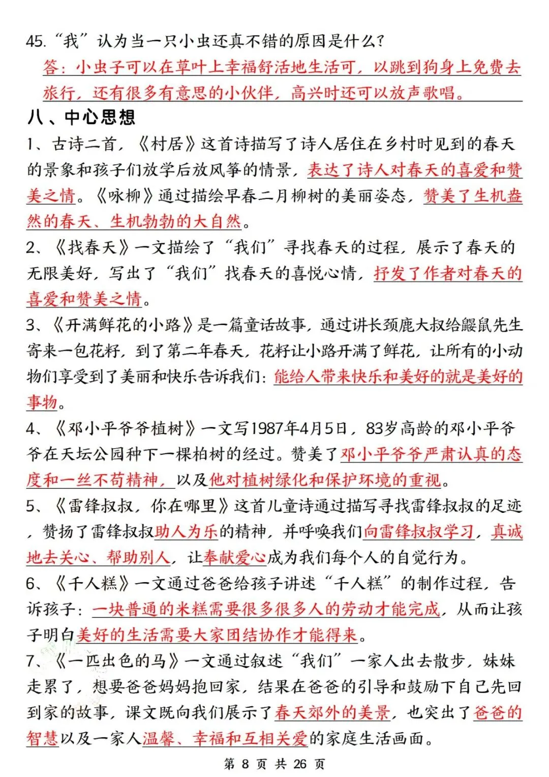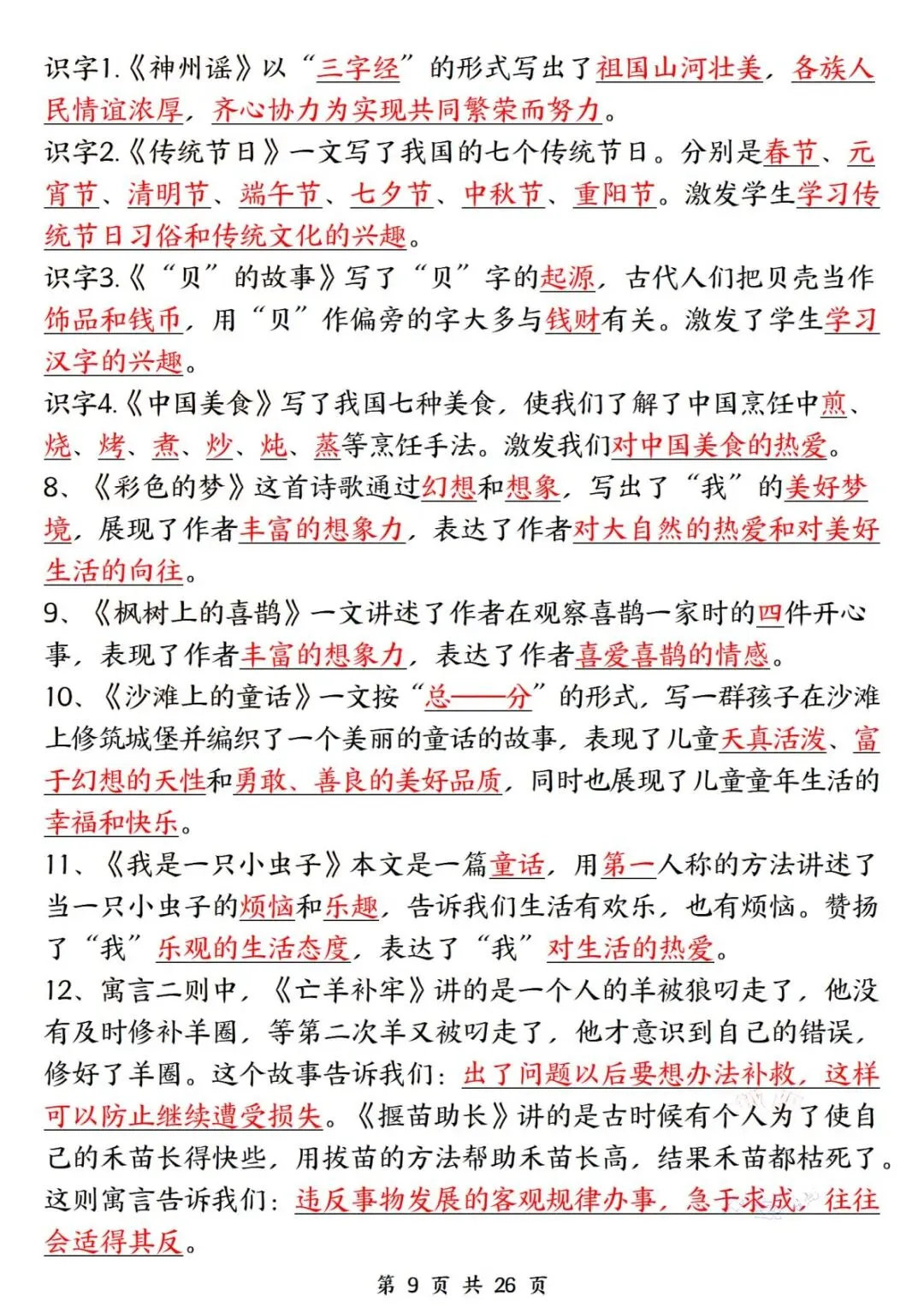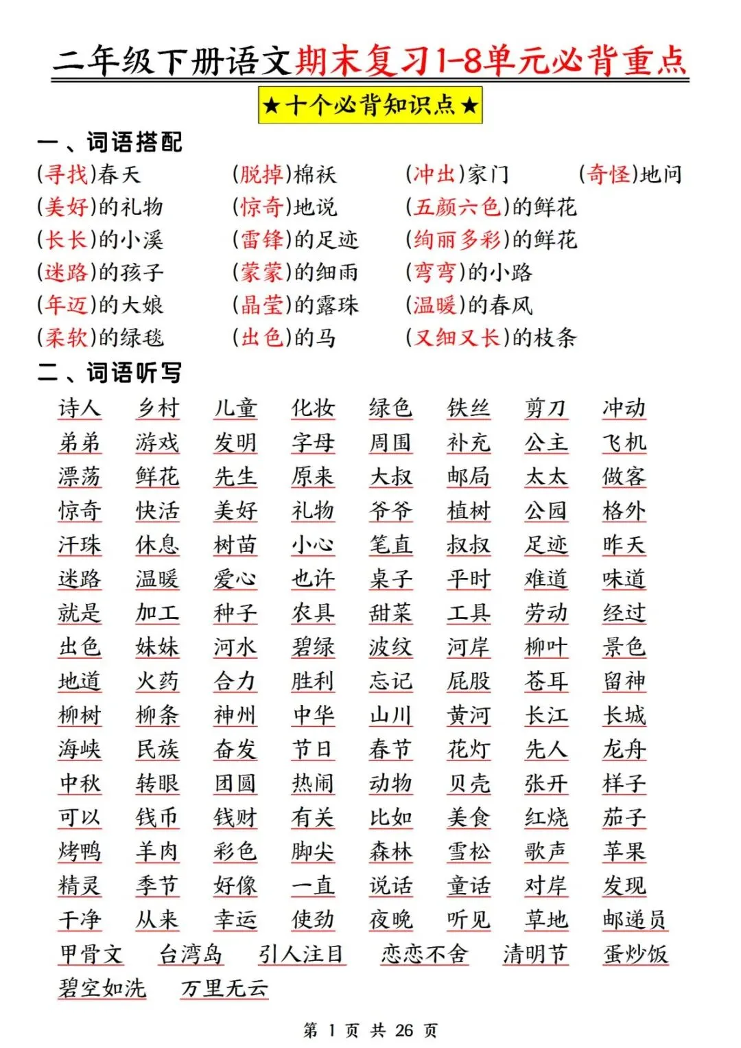 二下语文期末复习全册高频考点必考知识点汇总(27页)