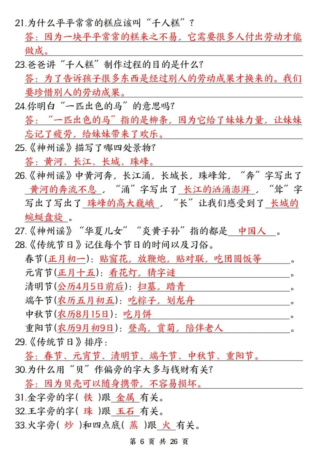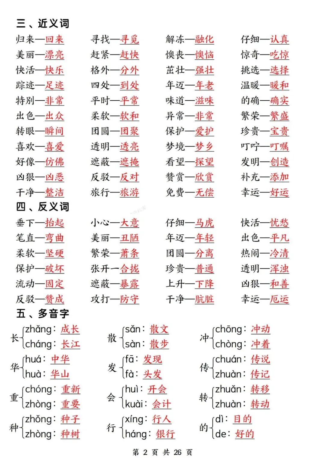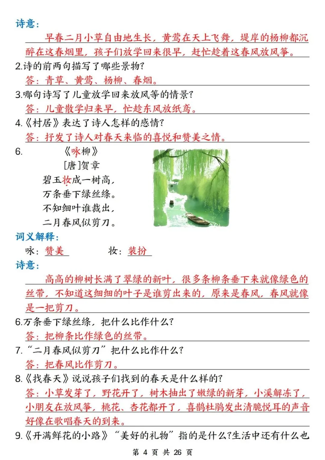 二下语文期末复习全册高频考点必考知识点汇总(27页)
