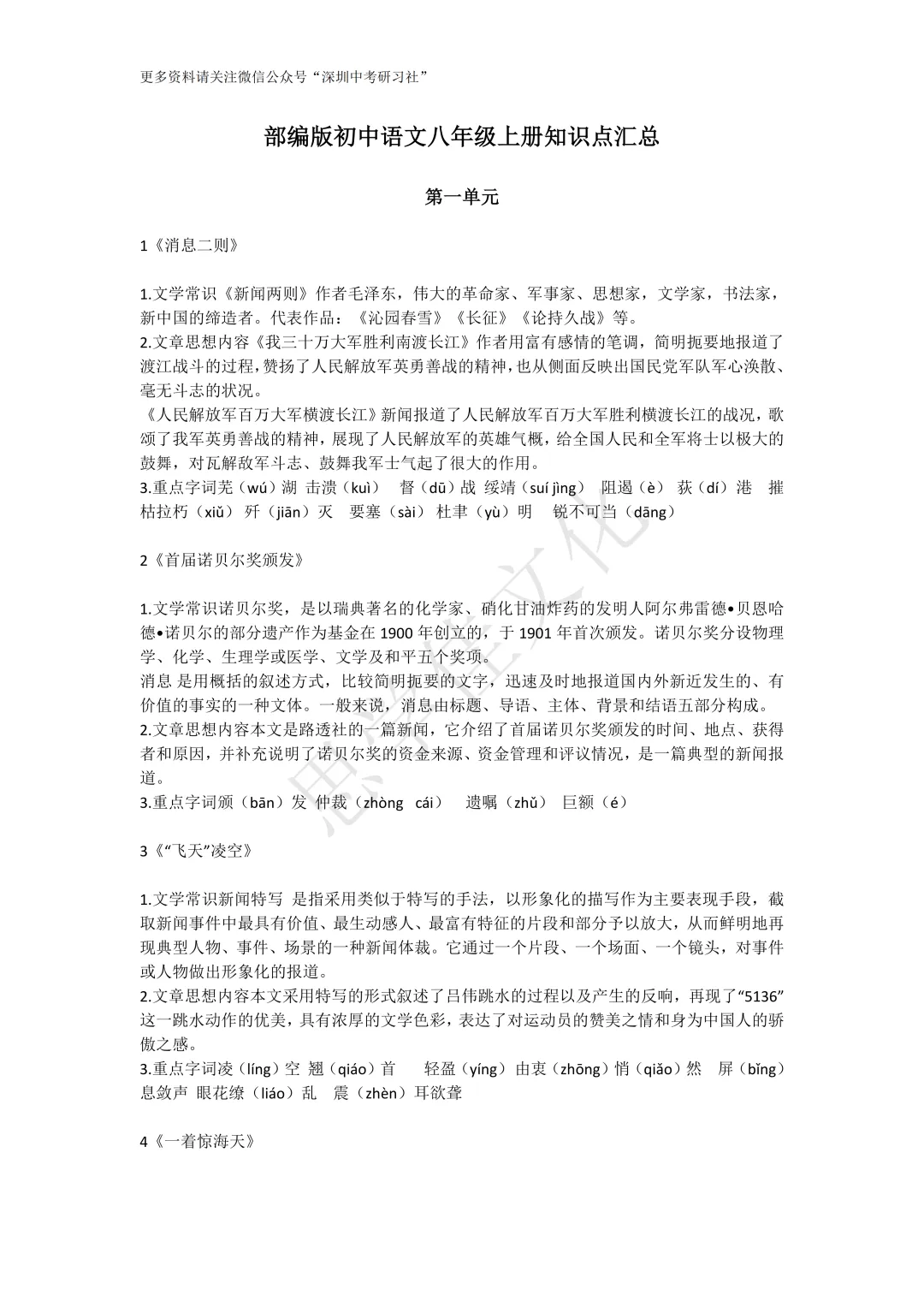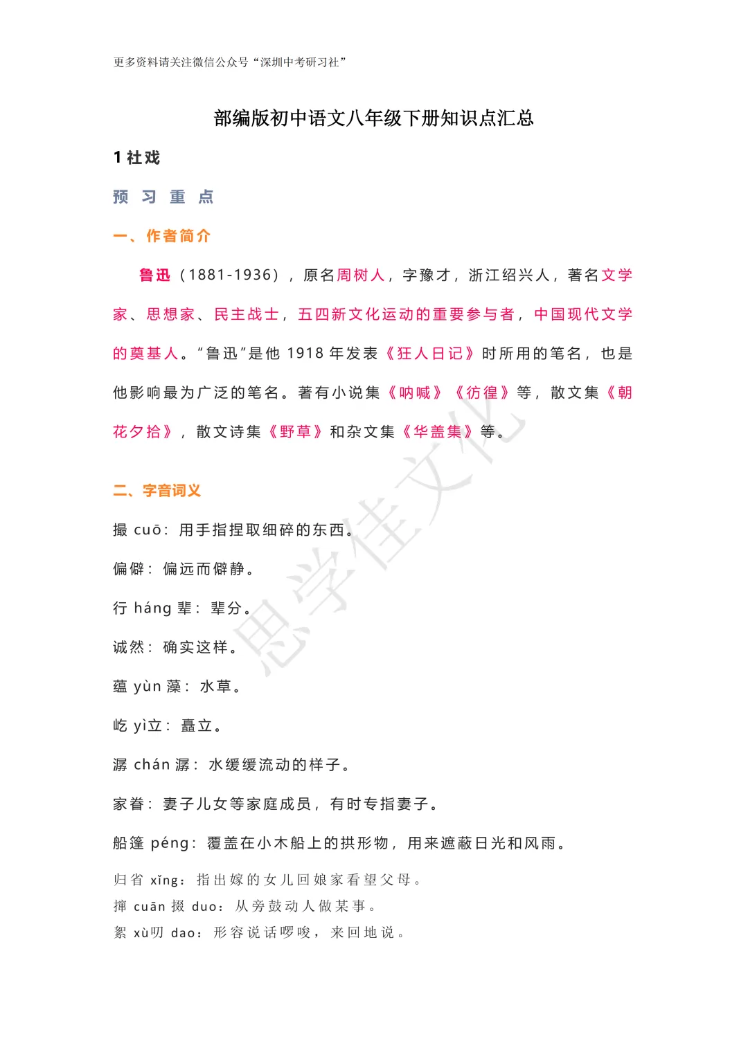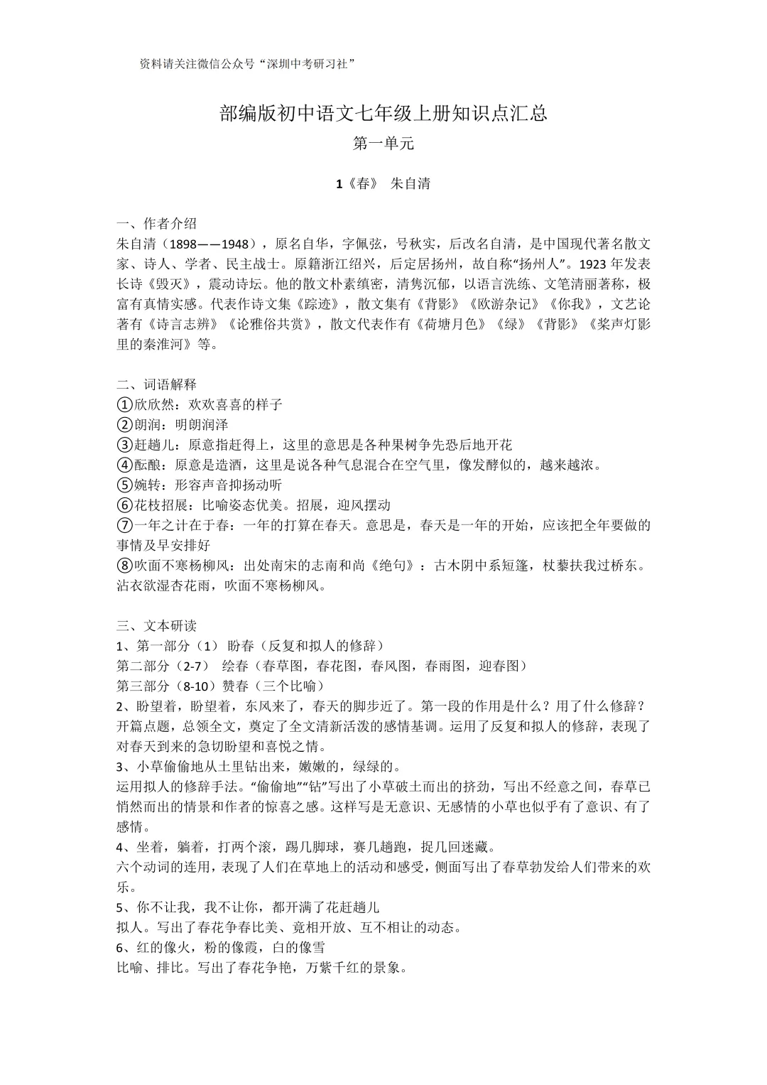 >深圳中考复习资料| 7-9年级语文知识点汇总