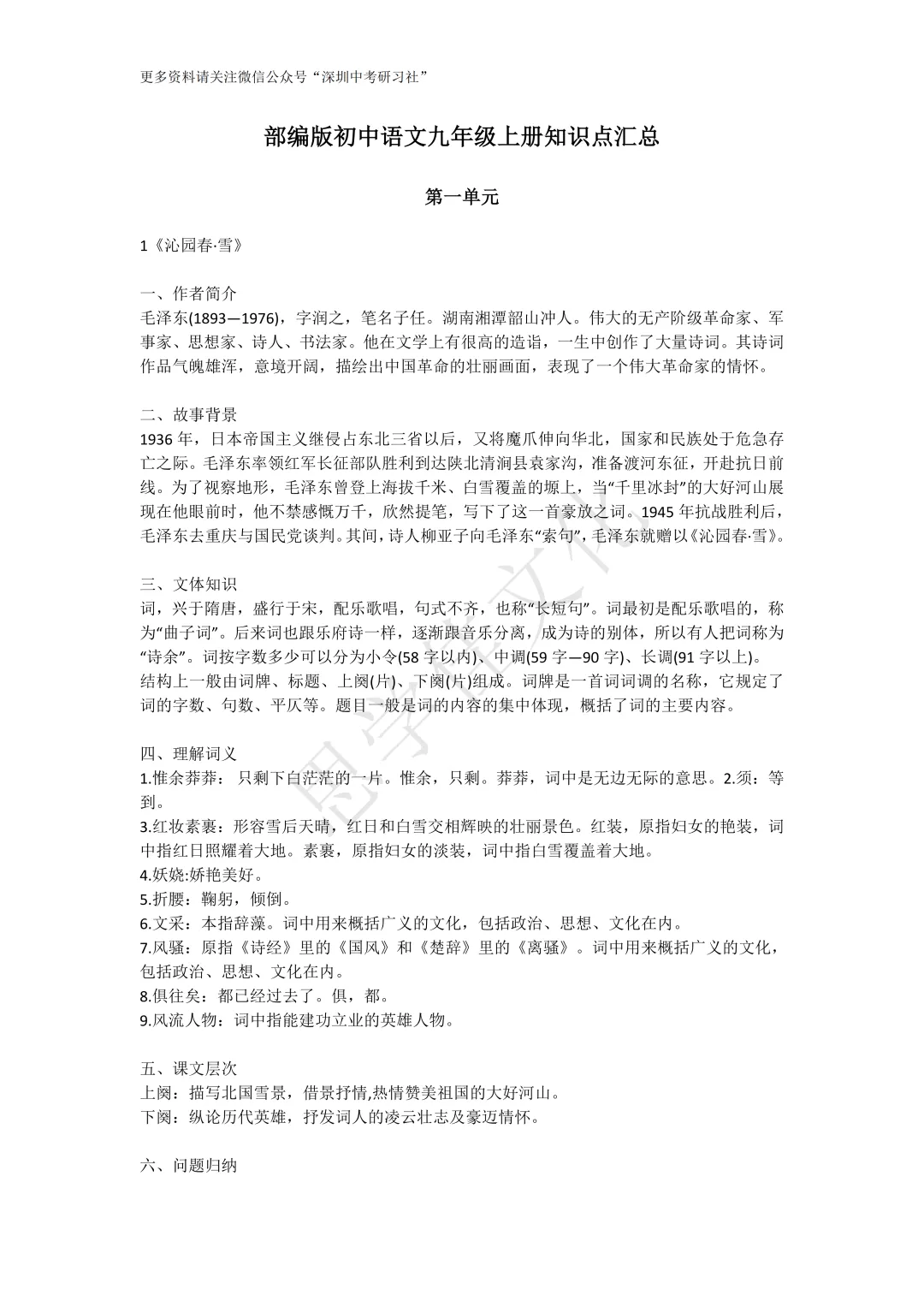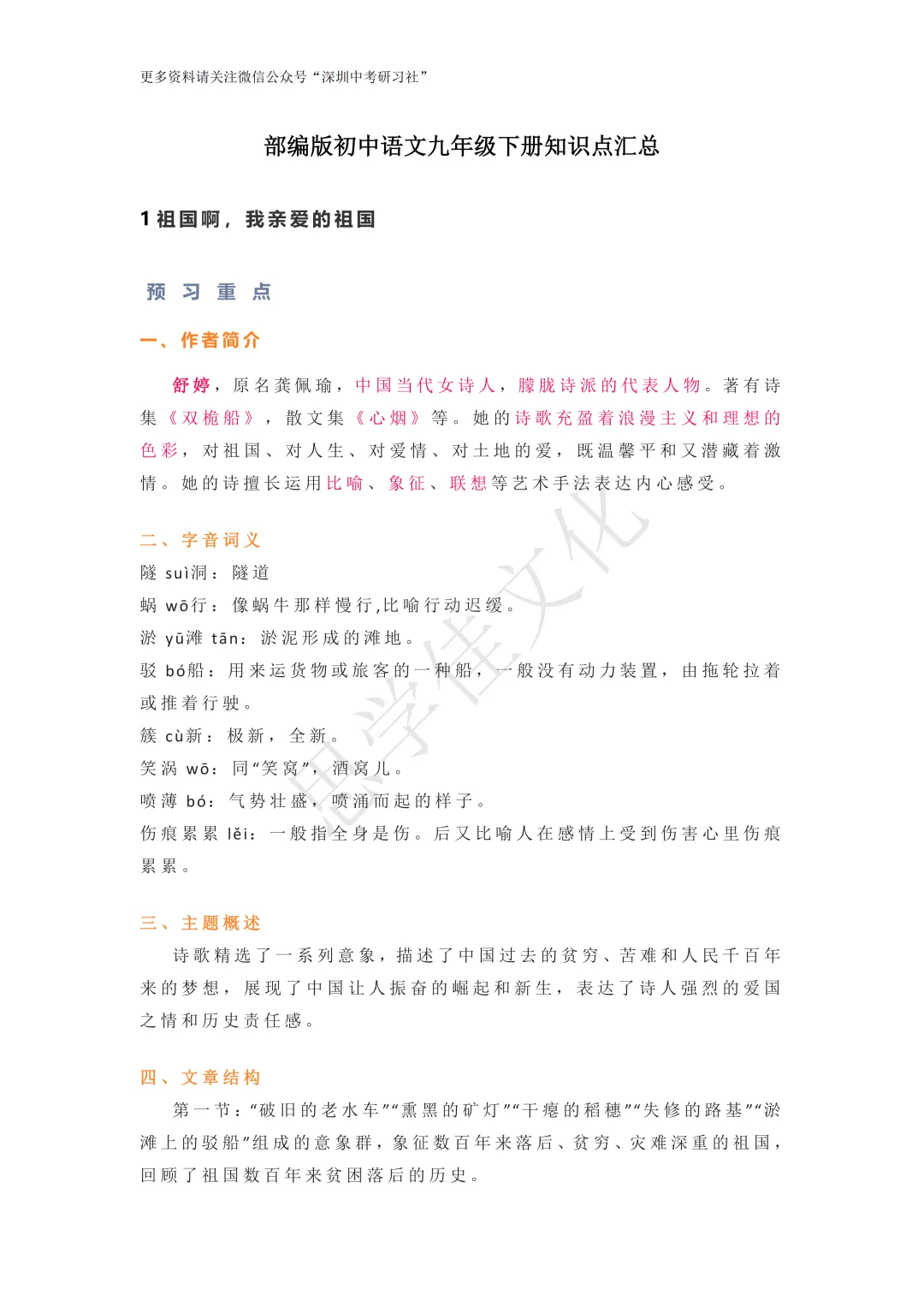 深圳中考复习资料| 7-9年级语文知识点汇总