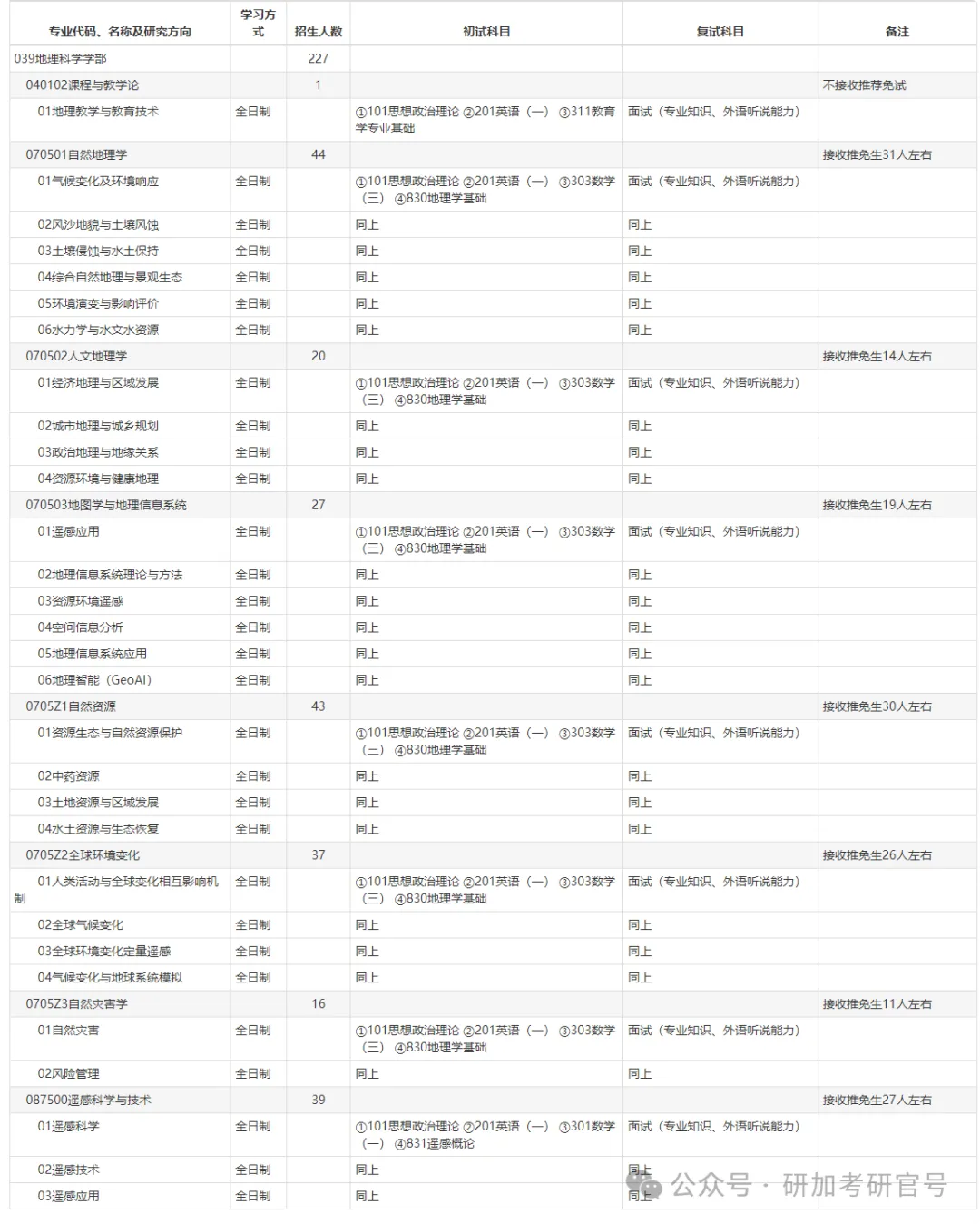 地理科学学部(参考2025年招生目录,2026年发布后可参考最新)