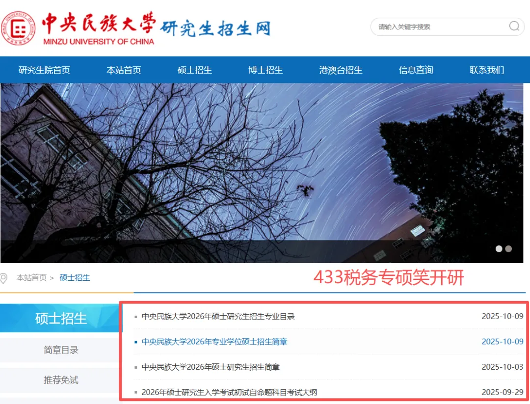 📢中央民族大学发布2026年硕士研究生招生信息