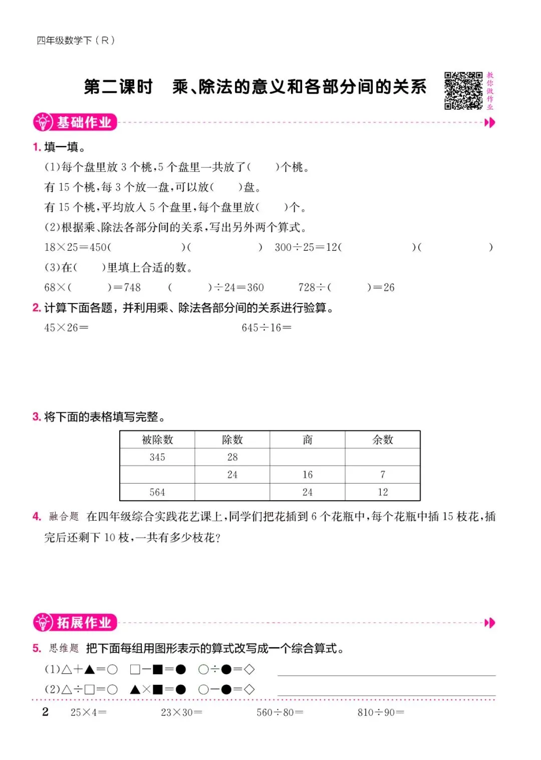 今日分享这份25春黄冈小状元作业本人教数学4下(高清PDF,可打印),寒假预习必背,需要的家长或老师可以给孩子提前准备一份!~