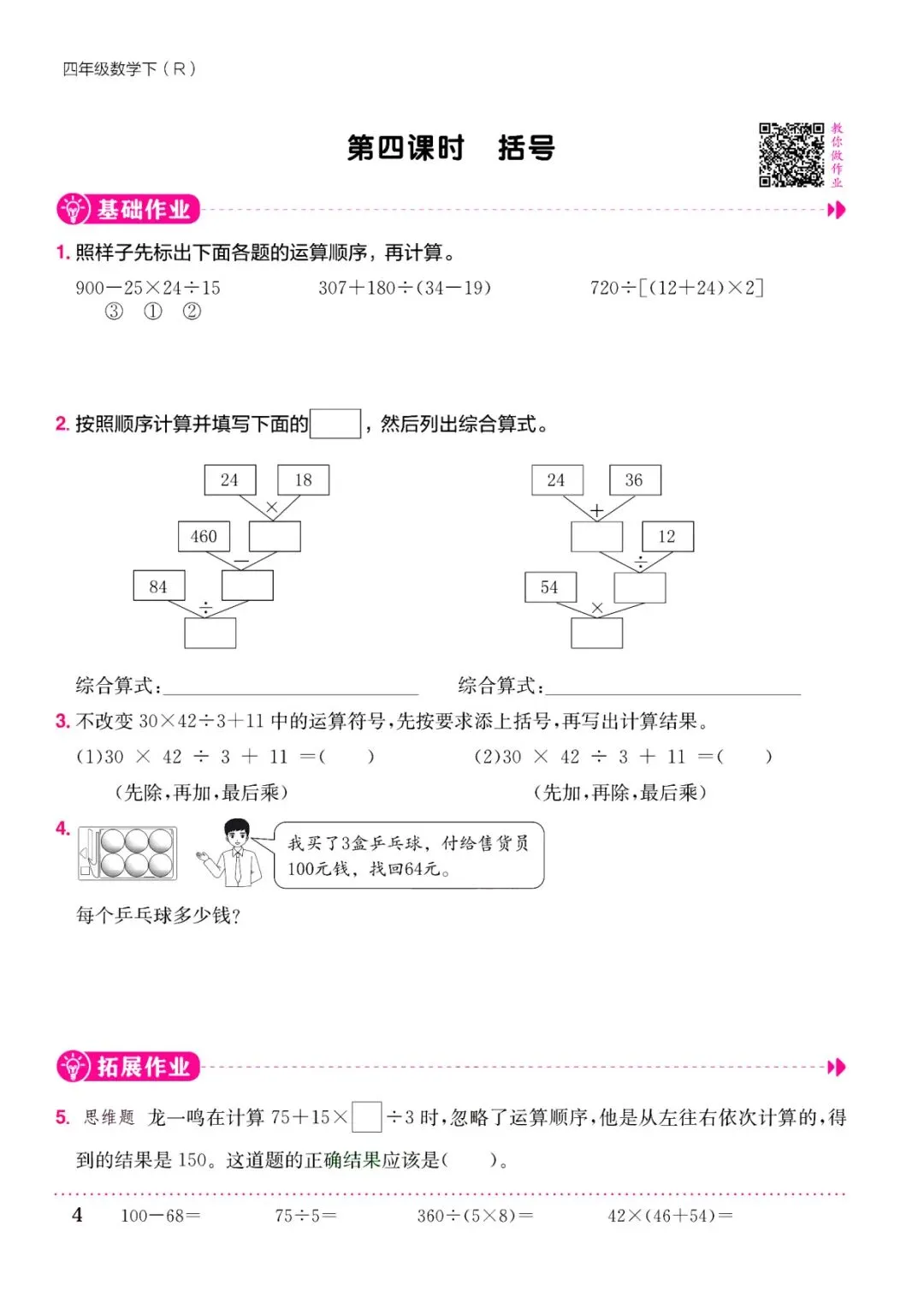 【免费领取】26小学预习复习资料25春黄冈小状元作业本人教数学4下已更新(可打印)《附小学预习合集》
