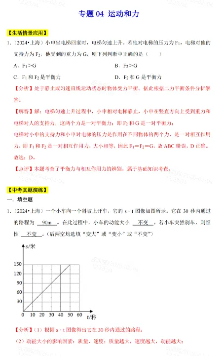 专题04 运动和力(解析)
