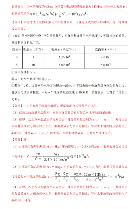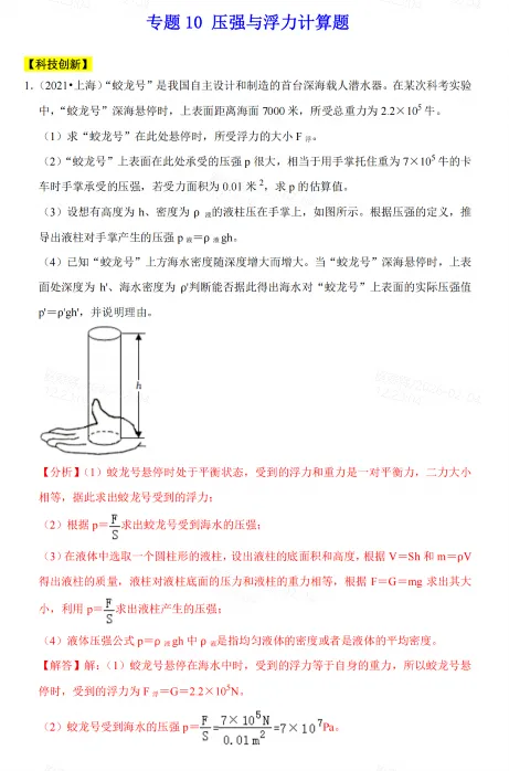 专题10 压强与浮力 计算题(解析)