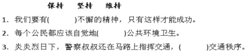 28、美妙 思路 琴声 我的 打断了 的 组成一个通顺的句子:改成“把”字句:改成“被”字句:29、可是你说这些对我有什么用呢?(改为陈述句) 30、好的,我肯定明年春天一定回来。(用修改符号修改) 二、填动词。( )游戏 ( )课文 ( )招呼 ( )热闹 ( )地面 婉转地( ) 努力地( ) 慢慢地( ) 费力地( ) 细心地( ) 悄悄地( ) 偷偷地( ) 轻轻地( ) 飞快地( ) 使劲地( ) 静静地( ) 吱呀地( )
