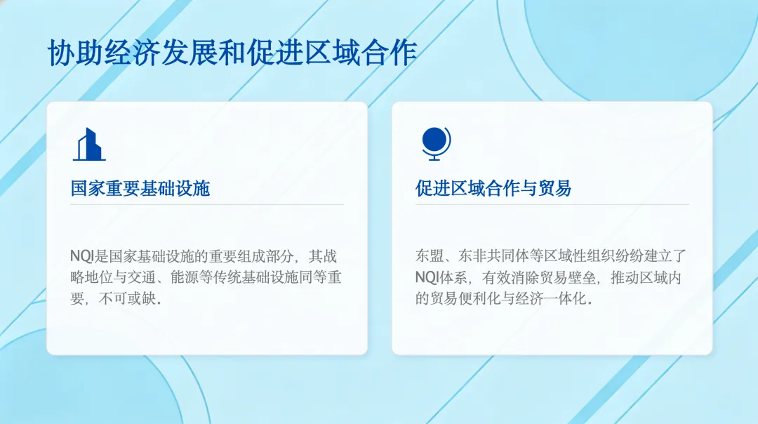 第四,NQI本身就是国家重要的基础设施之一,其重要性与交通、能源等传统基础设施不相上下。同时,它也在促进区域合作方面发挥着积极作用,许多区域组织都建立了自己的NQI体系来推动区域一体化。