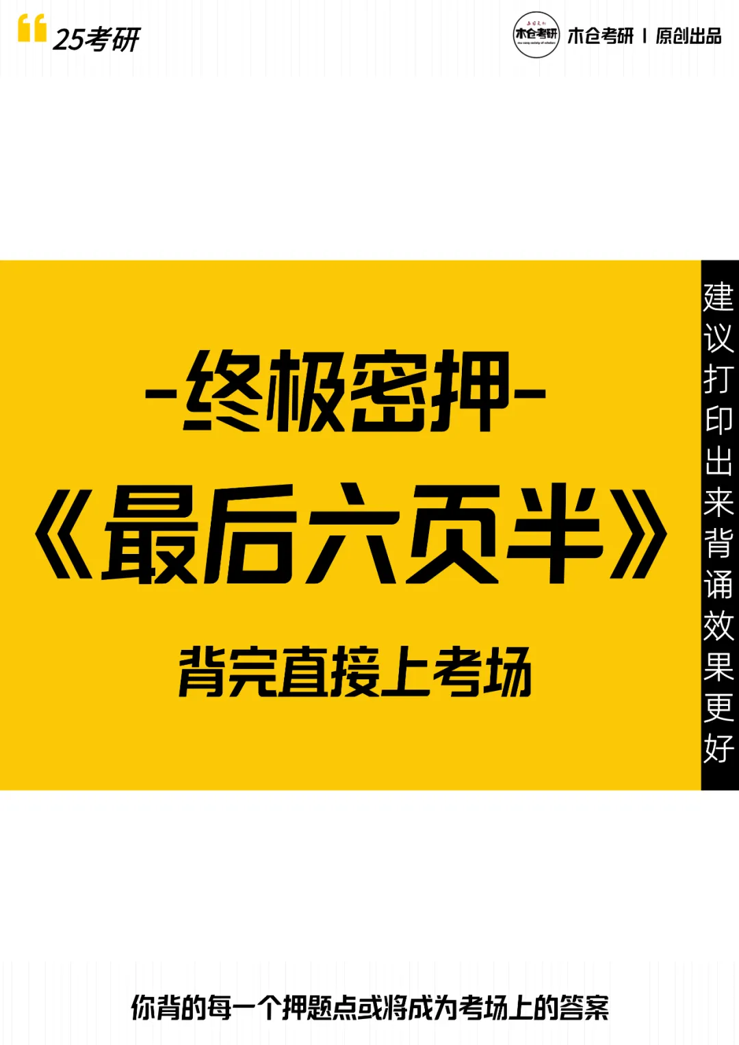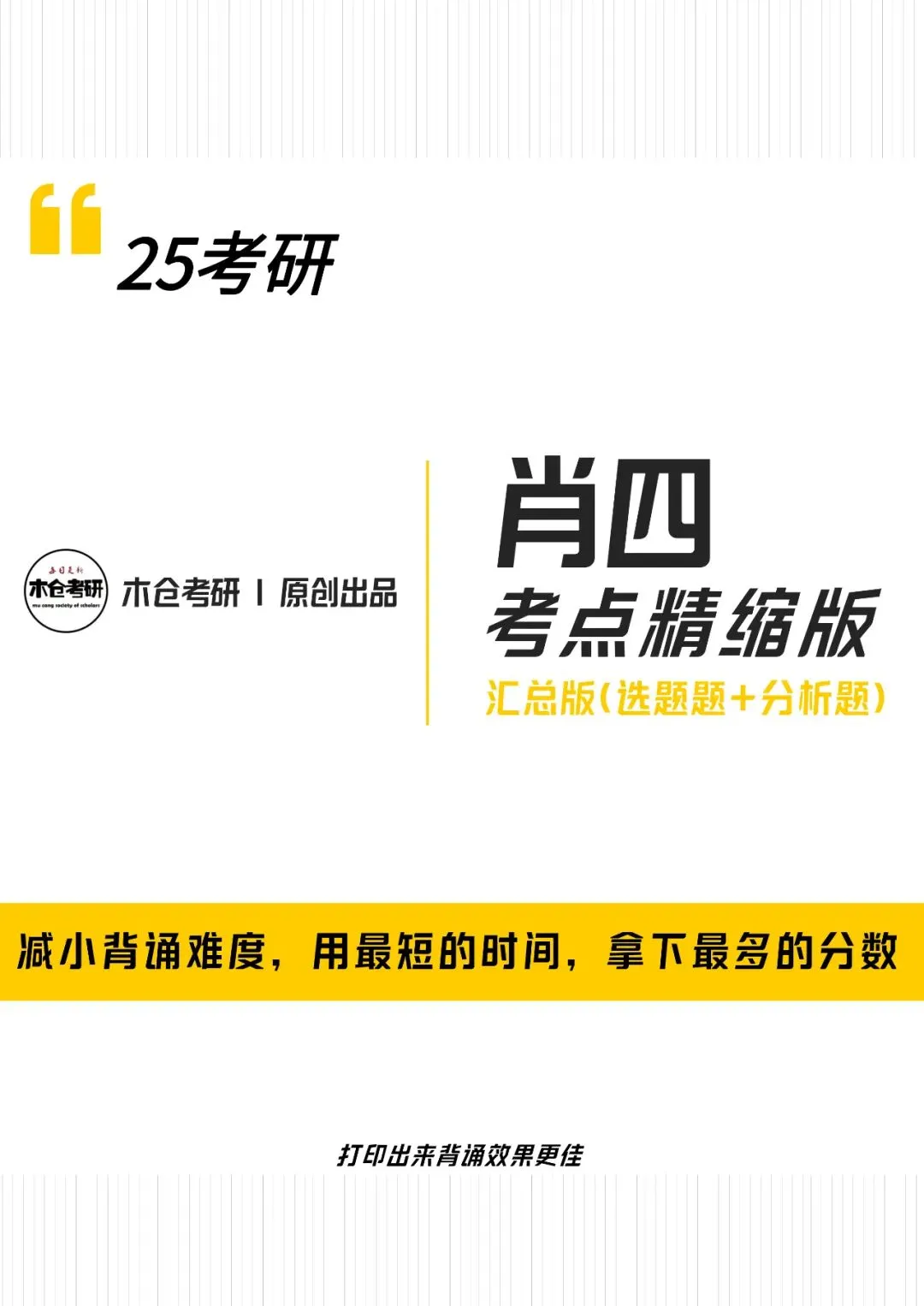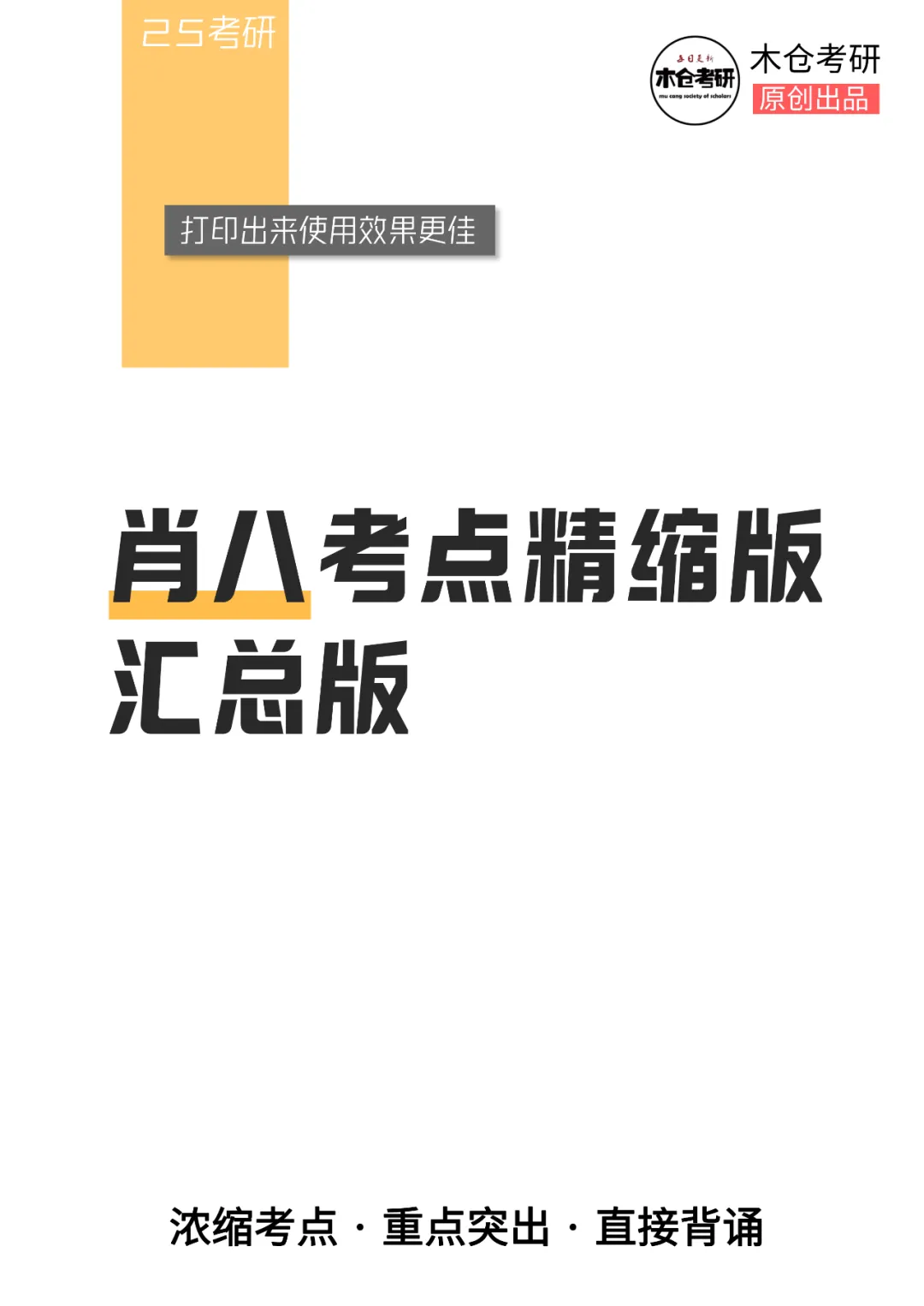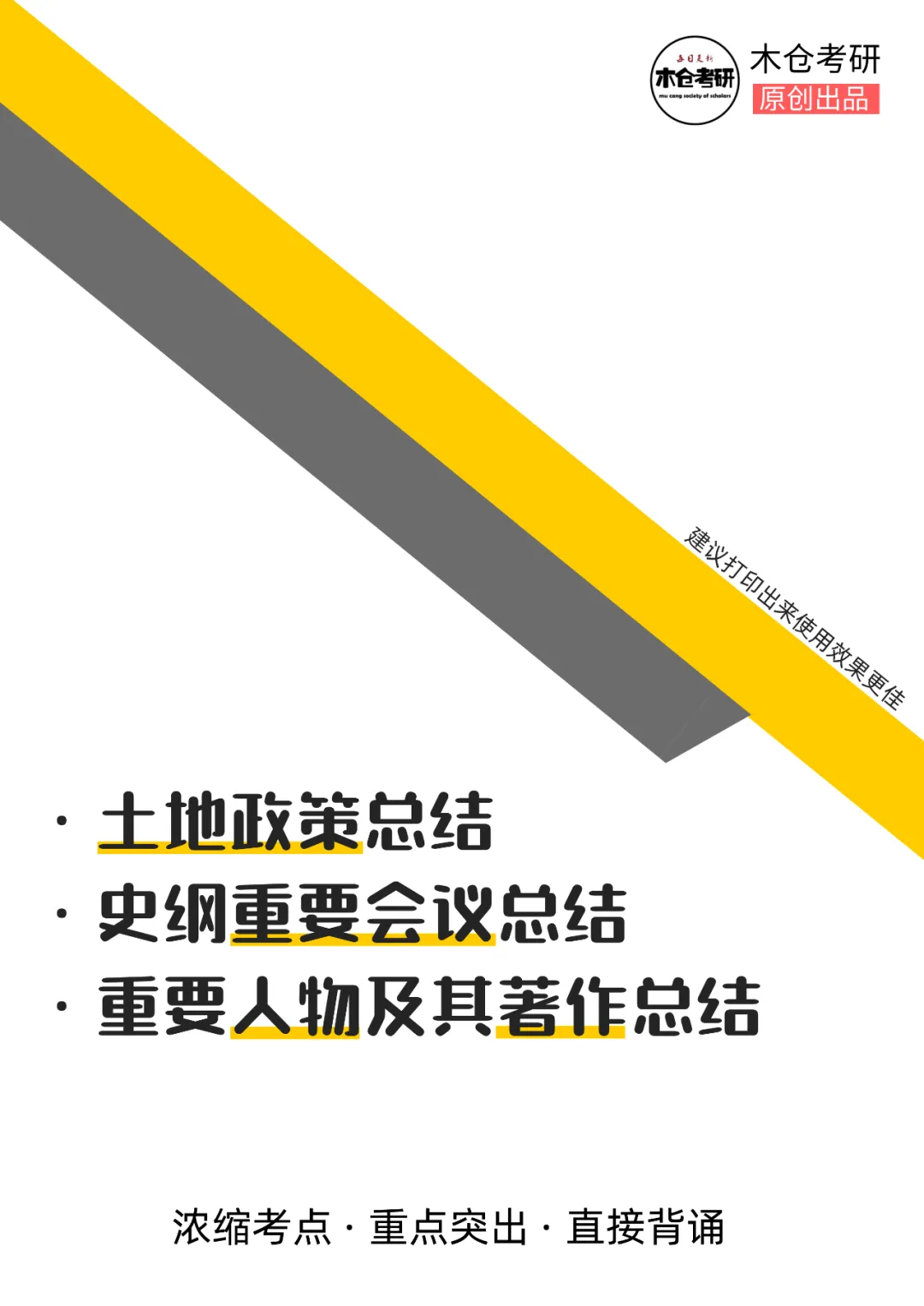 到考研最后的冲刺阶段,如果题做不完,或者说模拟卷冗长的解析和答案难以理解,那么直接背考点精缩版就够了!包含:包含肖8、肖4、徐6、腿4、蒋5、余6、米3等超30套押题卷,还有《名师帽子题总结》,《考前时政汇编》,《24考研周年纪念大事件》,《土地政策总结、史纲重要会议总结、重要人物及其著作总结》、《终极密押最后六页半(考前3天发布)》等。