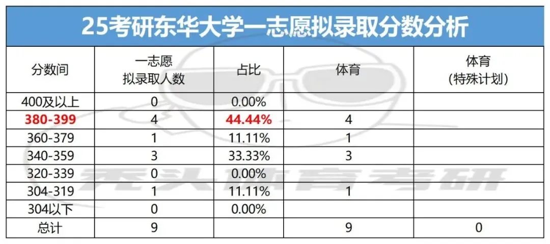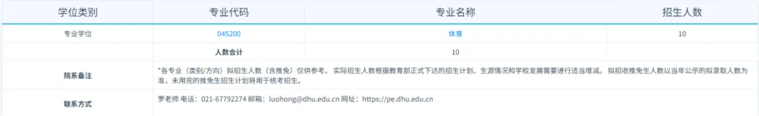 2025年东华大学045200体育硕士一志愿拟录取9人;满额。无调剂。