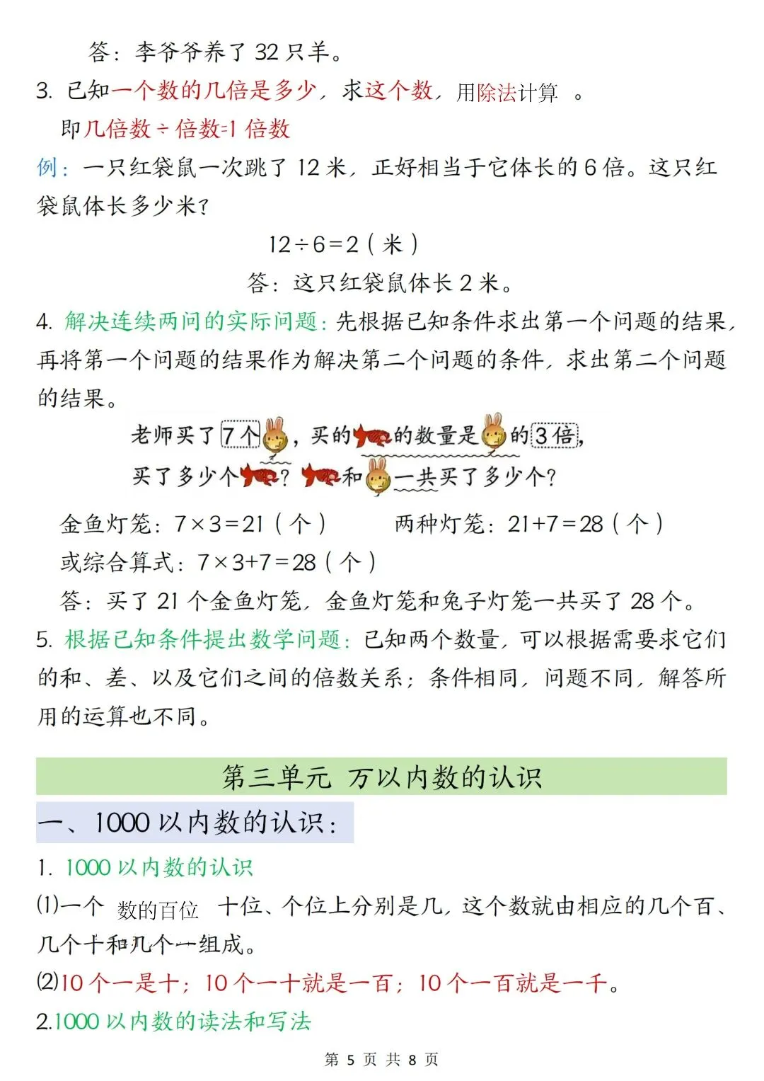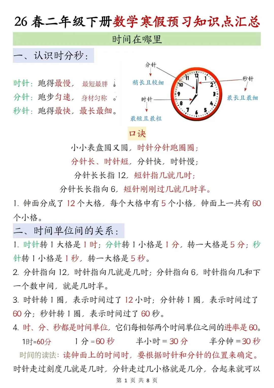 二年级数学下册寒假复习,重点必背知识汇总!