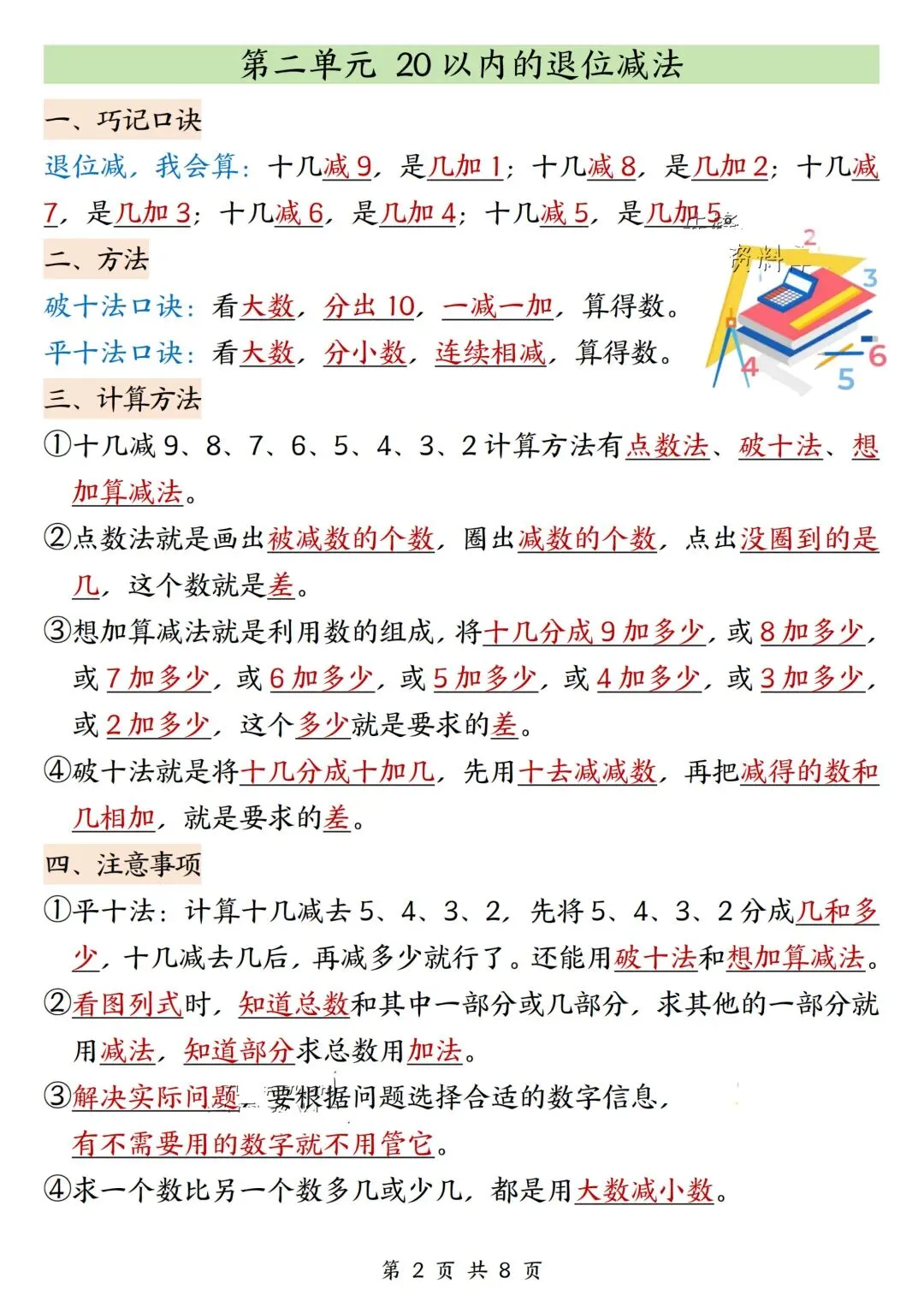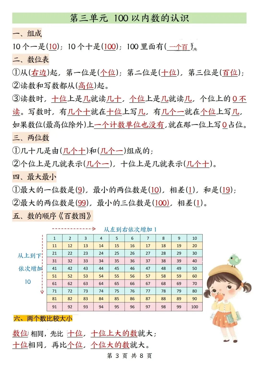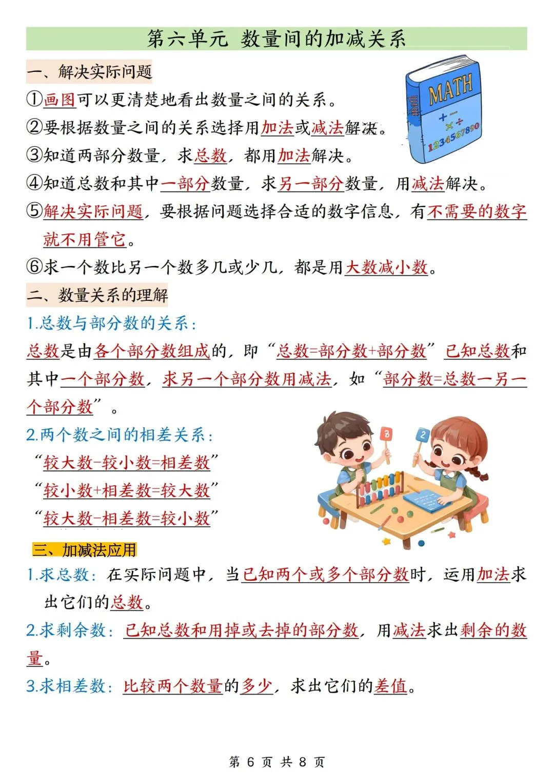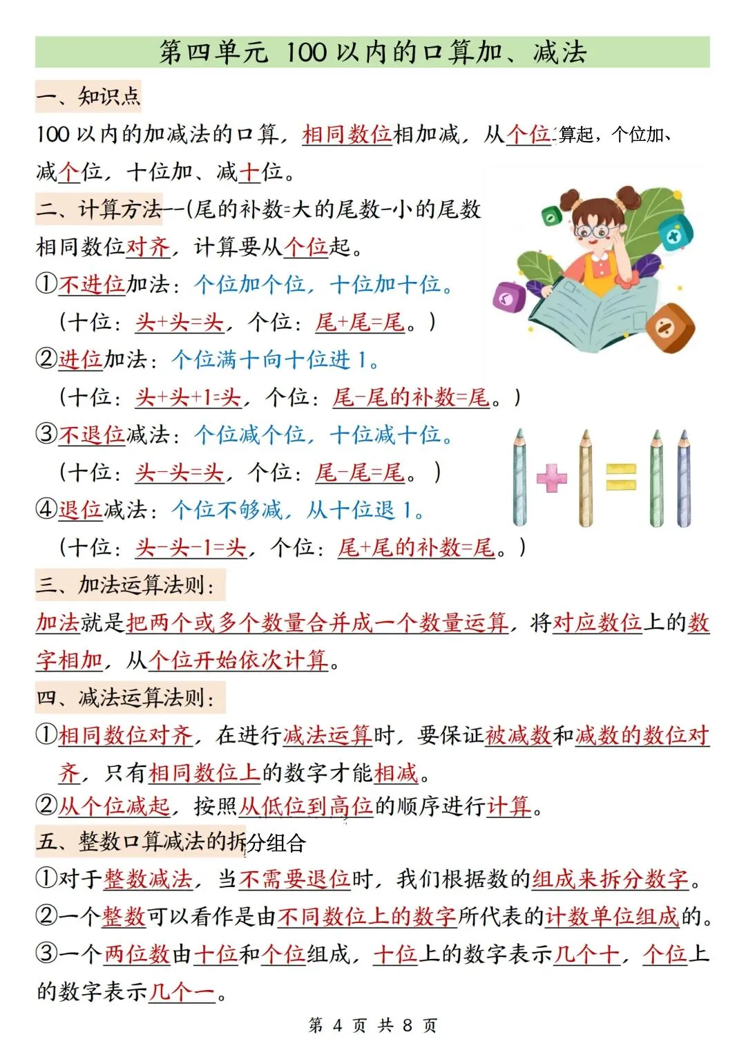 一年级数学下册寒假复习,重点必背知识汇总!
