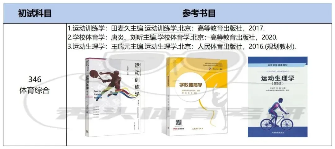 本科目考试包括运动训练学、学校体育学、运动生理学的基本内容,要求学生对体育学基本理论框架和相关的基本理论知识有全面的了解。测试考生对体育专业所涉基本概念、基础知识的掌握情况和运用理论分析问题的能力。