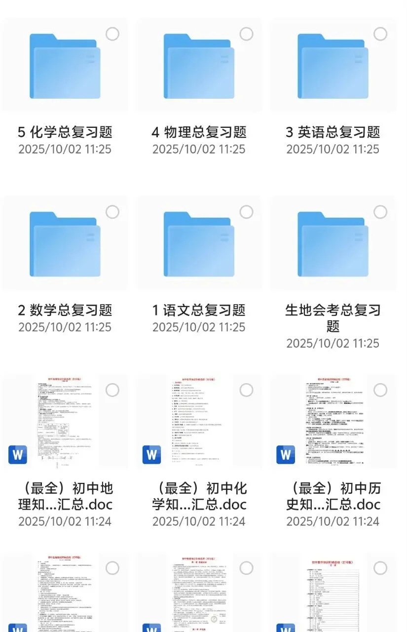 今天为大家带了初中全科的复习资料,涵盖各科的重点知识点,题型,数学模型和各科各地的中考模拟卷。