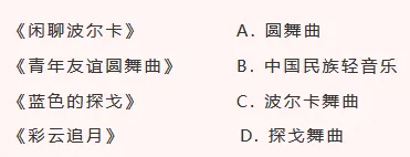 11. 请将下列乐曲与其对应的主要舞蹈或音乐类型连接起来。