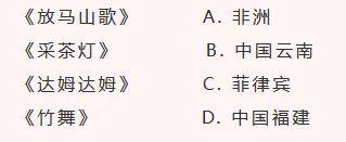 11. 请将下列民歌与其所属的国家或地区连接起来。
