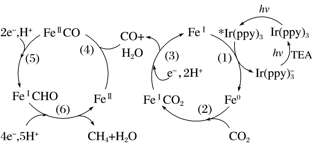 6.(2025·湖北省T8联盟模拟)在可见光的照射下将CO2催化还原为CH4的反应历程如图所示(FeⅡ代表铁显+2价)。下列叙述错误的是( )